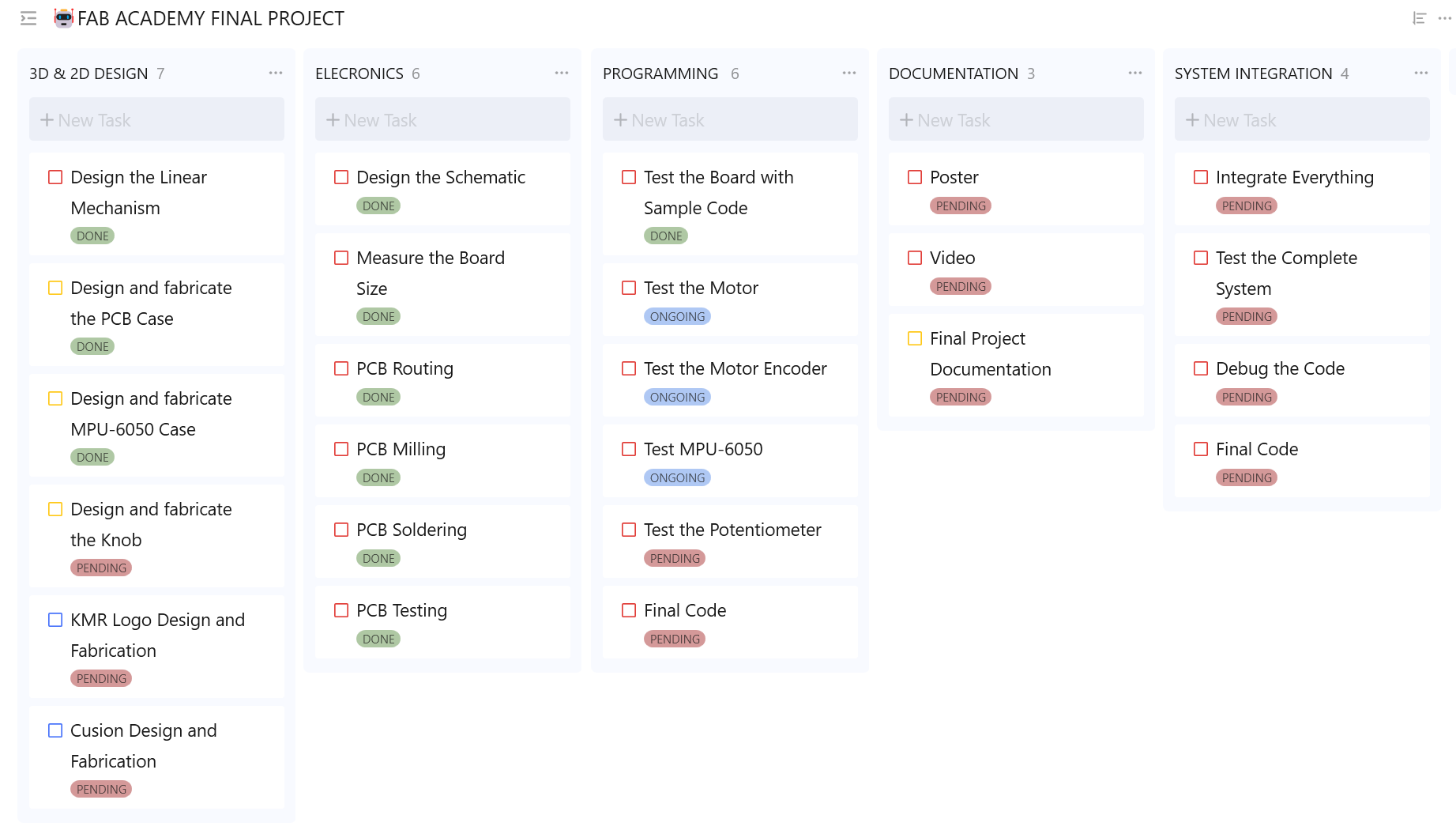 The programming phase is a bit more time-consuming and there are subparts and programs that need to be tested to obtain the final code. This could be only achieved once the linear mechanism is successfully integrated into the main system.