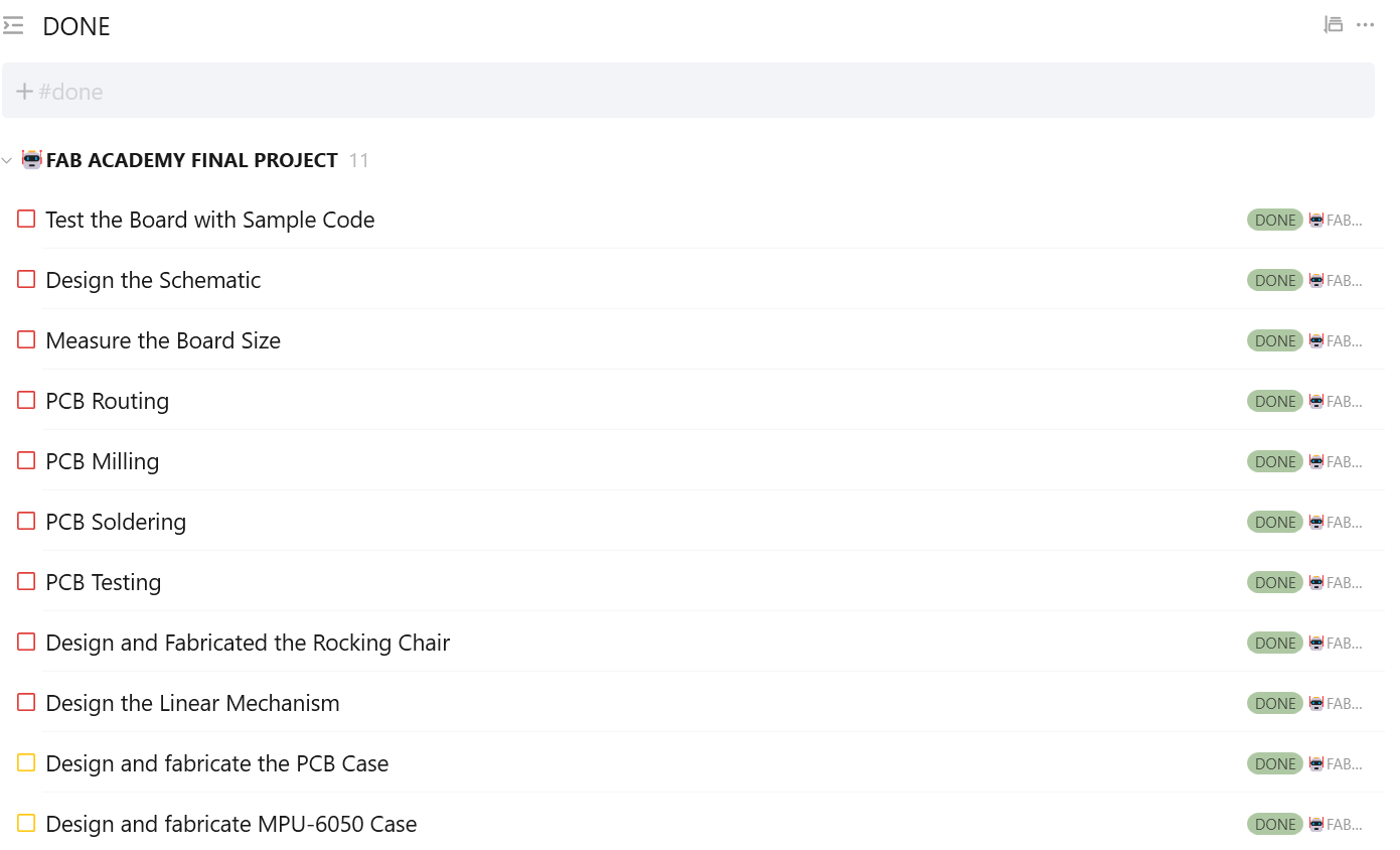 The embedded programming phase still remains a question mark. Completing the remaining tasks is the only way to complete the programming phase. I need to fabricate the designed linear mechanism parts, and then I need to integrate them with the rocking chair to test and debug the code.