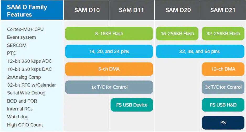 Before programming the Eagle board, check the memory capacity of the chip that you are using. The image shown below illustrates the memory capacity of the SAM-D family.ย
