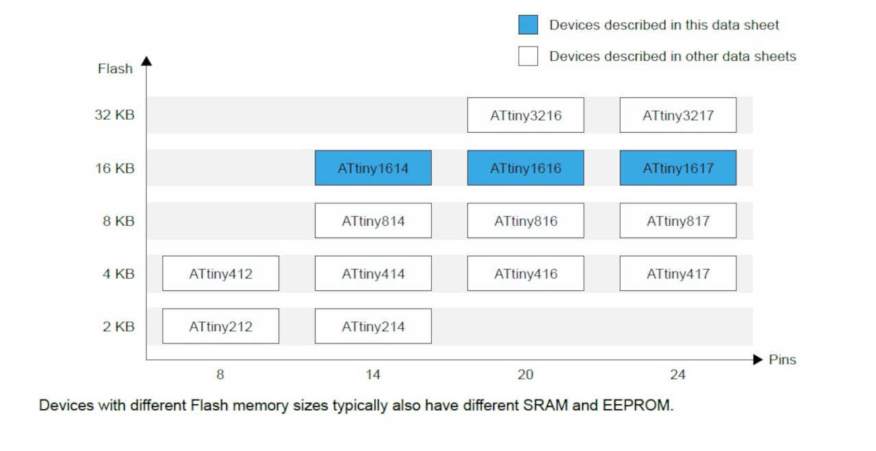 The image shown below illustrates the memory capacity of the ATtiny family.