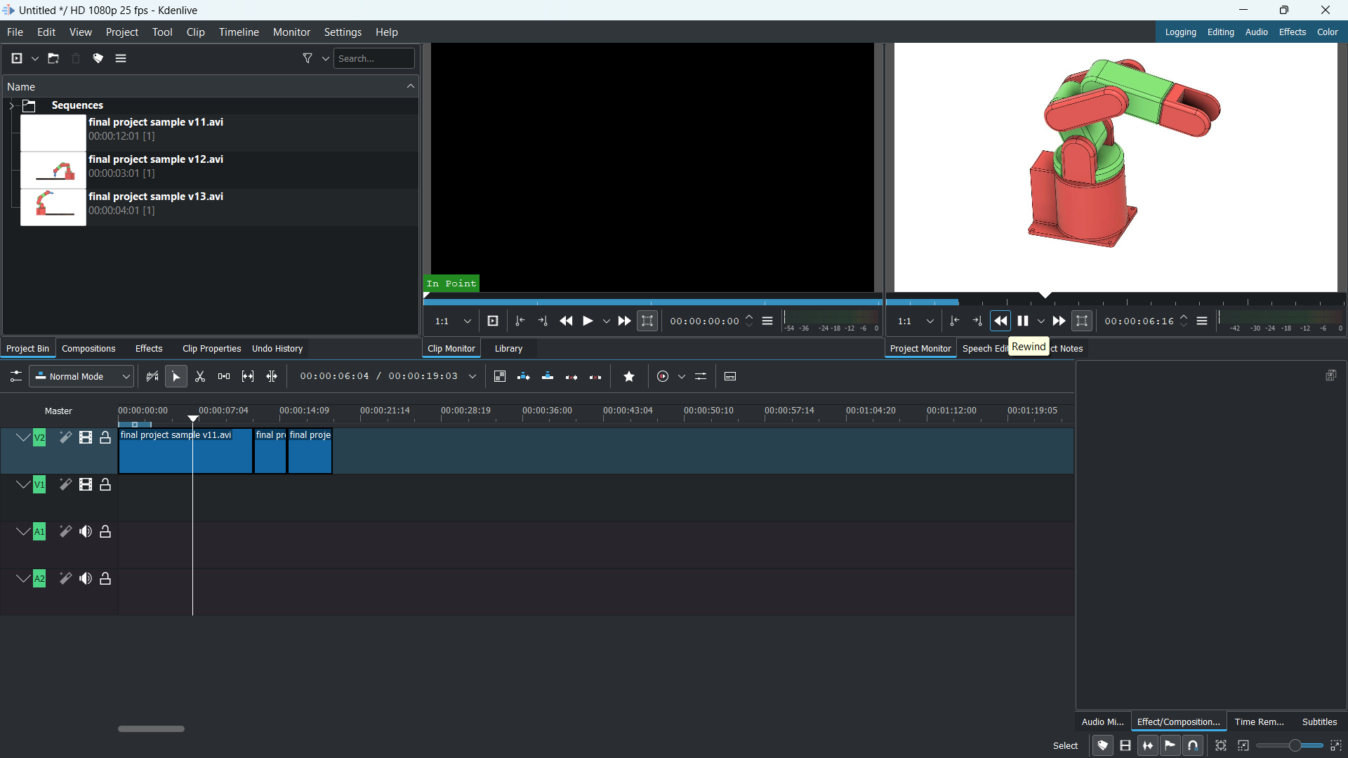 - I have used Kdenlive to edit my robotic arm animation video.