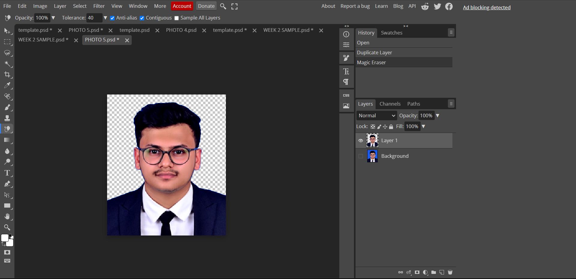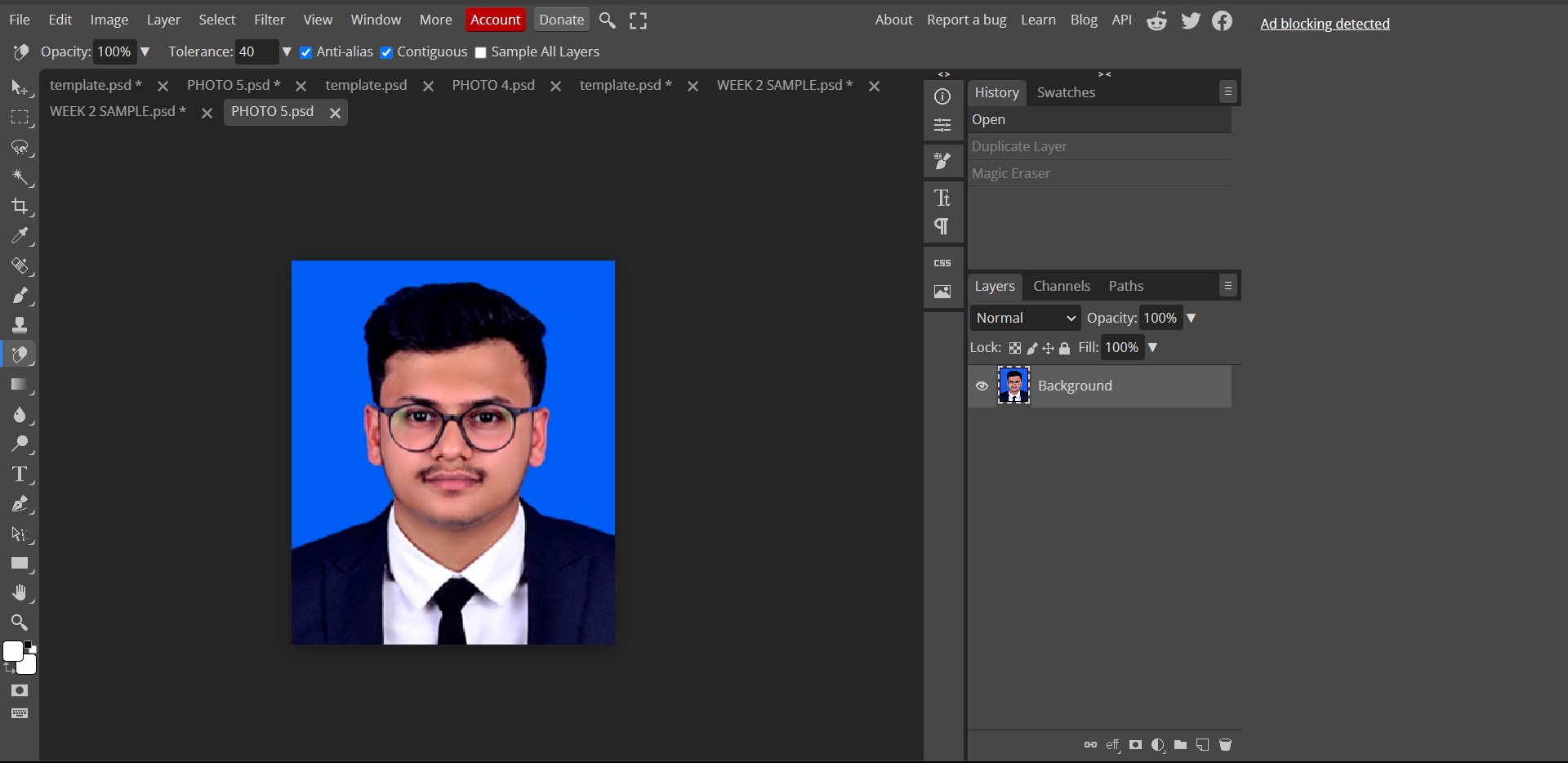 🟩To start with, I imported my passport-size photo into Photopea.