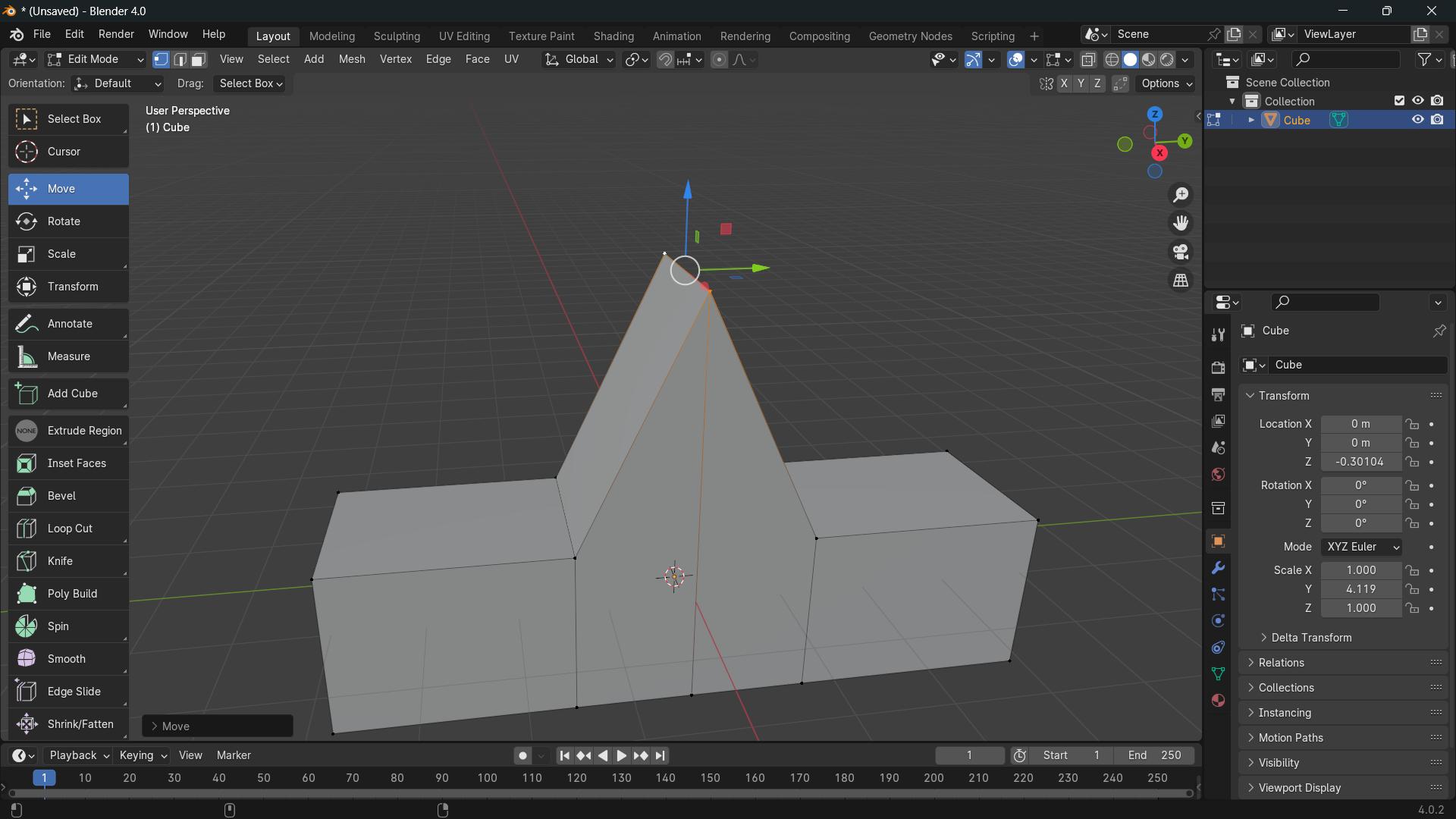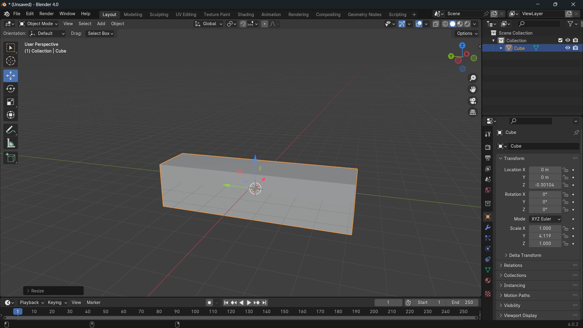 - Initially, from the cube position, Press “S” to scale, and press “Y” to lock in the y axis.