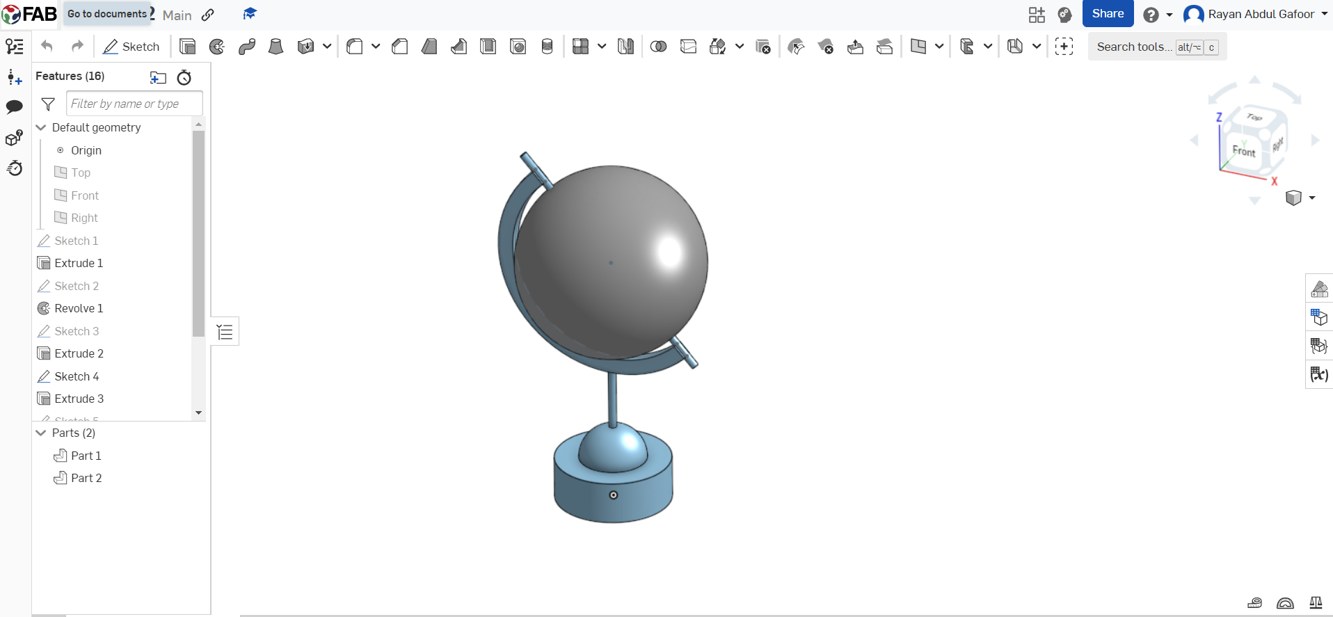 - Exit the sketch and use the extrude tool to give the circle volume. Enter the desired thickness for your globe.