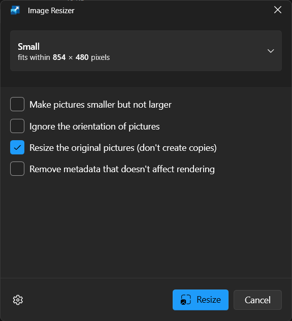 👉 Last, check the box next to "Resize the original pictures" and click "resize”.