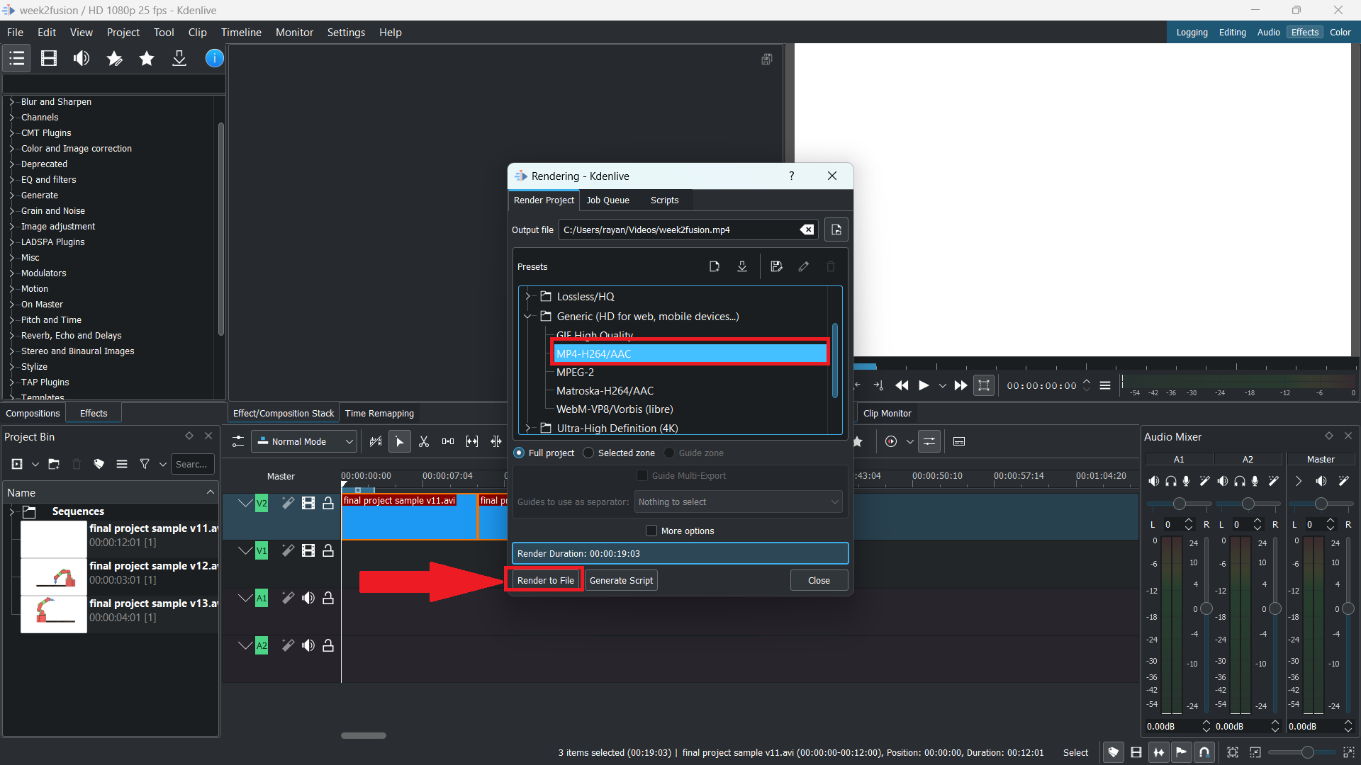- Choose the “Render to file” option.