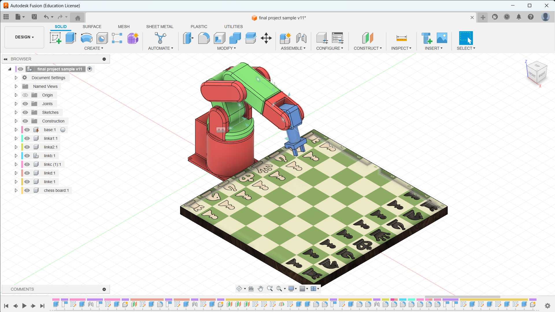 - Design the base or platform of the robotic manipulator. This may involve creating a solid body or assembly.