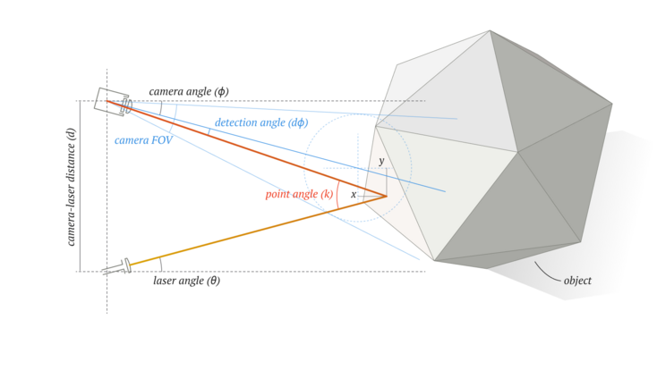 - The scanning software’s pattern-recognition and reconstruction algorithms understand that when a strip of light is thicker or thinner in places, then that means those points on the surface are respectively closer or farther away from the camera, while other shapes and structures are determined by varying types of deformations in the structured light patterns.