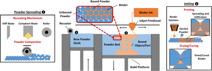 Binder Jetting works by depositing a binding agent onto a bed of powdered material, such as sand, metal, or ceramic. The binding agent selectively binds the powder together, layer by layer, to form the object. After printing, the excess powder is removed, leaving behind the solidified object.
