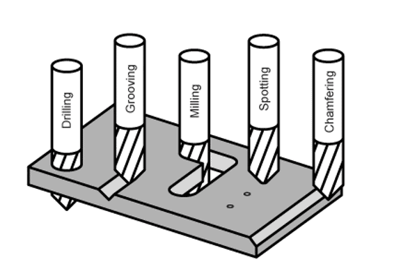 Mills are versatile cutting tools used for a range of operations, including contouring, slotting, facing, and other milling processes. They can perform various cutting tasks beyond hole-making.