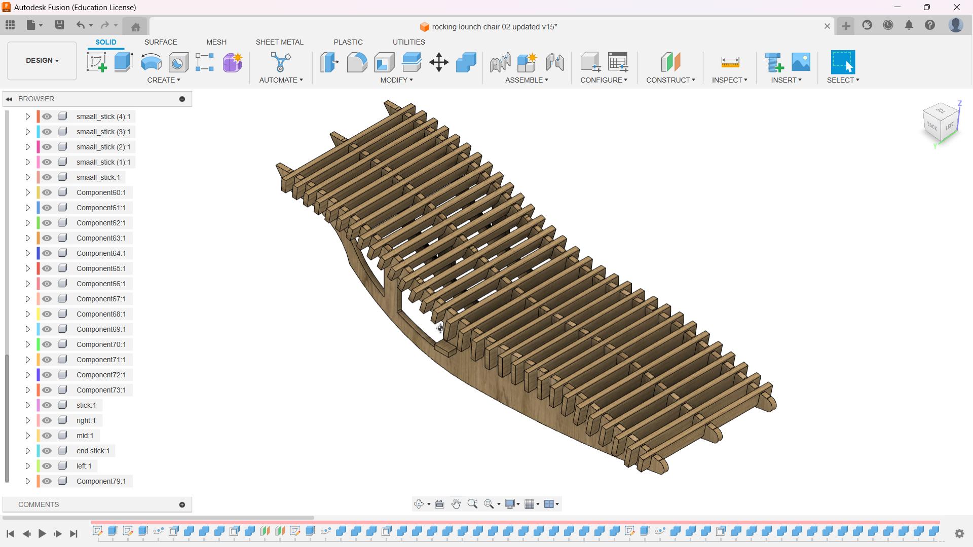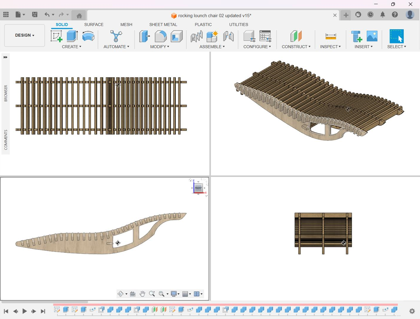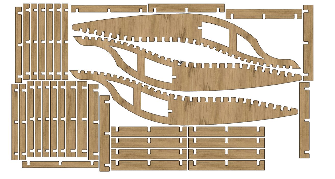 This week is one of the most challenging for me. I was inspired to build a sleeper-lounge chair to use for myself during my time at Fab Academy. Then I decided to implement the rocking chair concept. The size of the plywood was the primary factor. Each student could only have one piece of plywood. During the design process, I encountered discouragement from one of my instructors, who brought up the case of the student who made a rocking chair. He completed it by utilising the unused plywood of his peers. However, I decided to move on and challenged myself to design and cut my own plywood. I then take measurements of the plywood and design it accordingly, which is not an easy task. I need to consider the centre of gravity, and finally, the main goal is to rock. I customised the design to fit my body perfectly within the plywood's dimensions. Finally, I completed my design that could fit with a single piece of plywood.