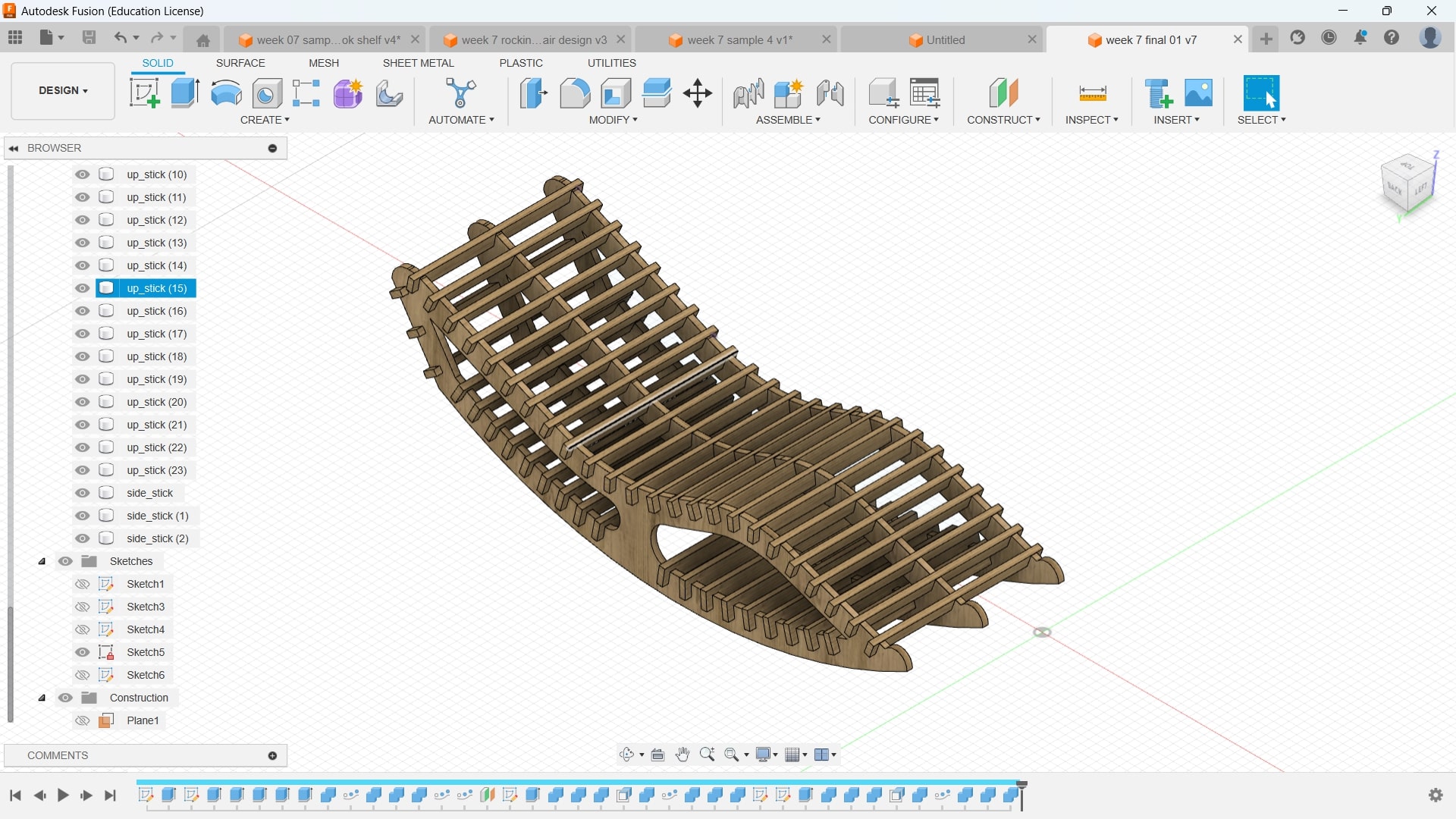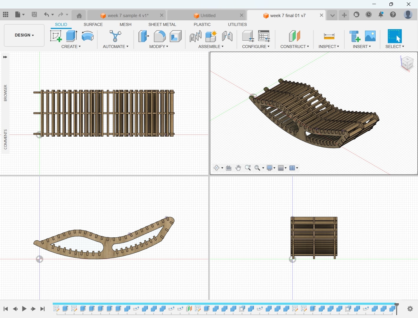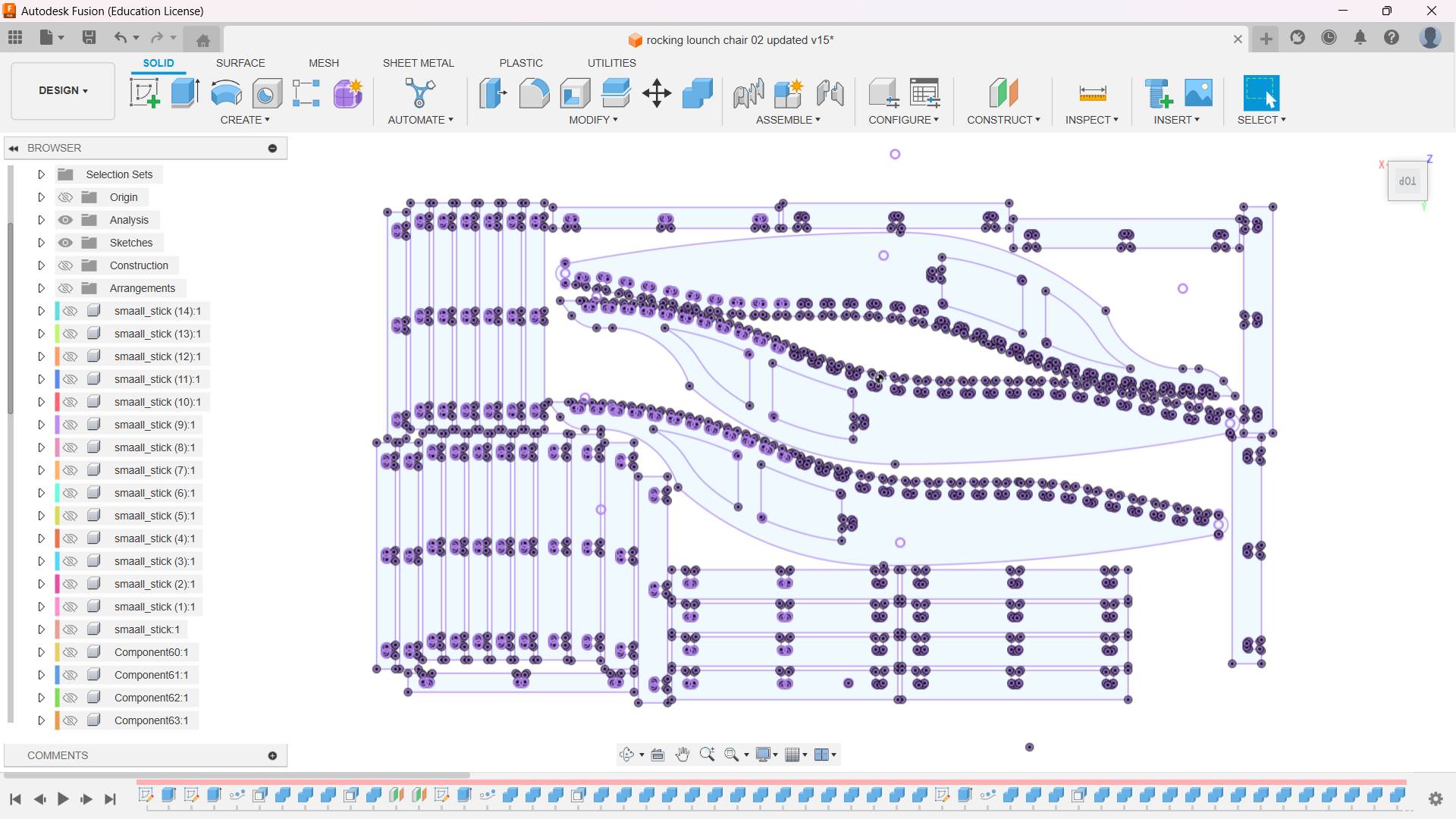 This week is one of the most challenging for me. I was inspired to build a sleeper-lounge chair to use for myself during my time at Fab Academy. Then I decided to implement the rocking chair concept. The size of the plywood was the primary factor. Each student could only have one piece of plywood. During the design process, I encountered discouragement from one of my instructors, who brought up the case of the student who made a rocking chair. He completed it by utilising the unused plywood of his peers. However, I decided to move on and challenged myself to design and cut my own plywood. I then take measurements of the plywood and design it accordingly, which is not an easy task. I need to consider the centre of gravity, and finally, the main goal is to rock. I customised the design to fit my body perfectly within the plywood's dimensions. Finally, I completed my design that could fit with a single piece of plywood.