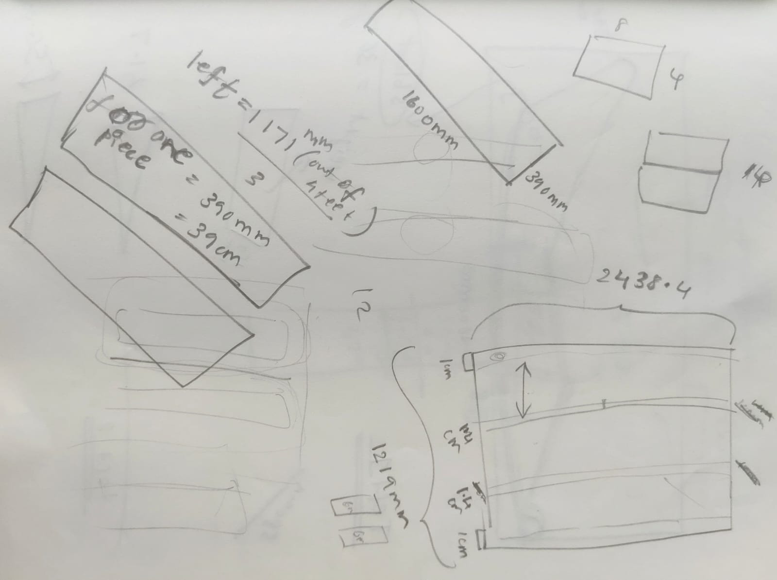 The size of the plywood allocated for us was 2440 mm in length and 1220 mm in width, and I considered 18mm as the thickness.