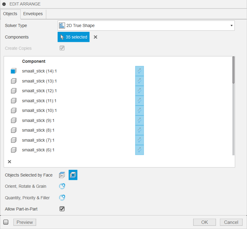 Using the "move," "rotate," and "flip" tools, I made adjustments to the file to ensure that each part would use the maximum amount of material possible.