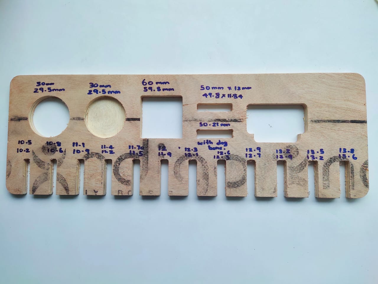 I measured the thickness of the plywood from different sections of the plywood, and instead of taking the average, I chose the highest value. However, I manage to fit the parts, but it is recommended to take the average value of at least 8 values taken from 8 different sections of the plywood using a digital vernier.