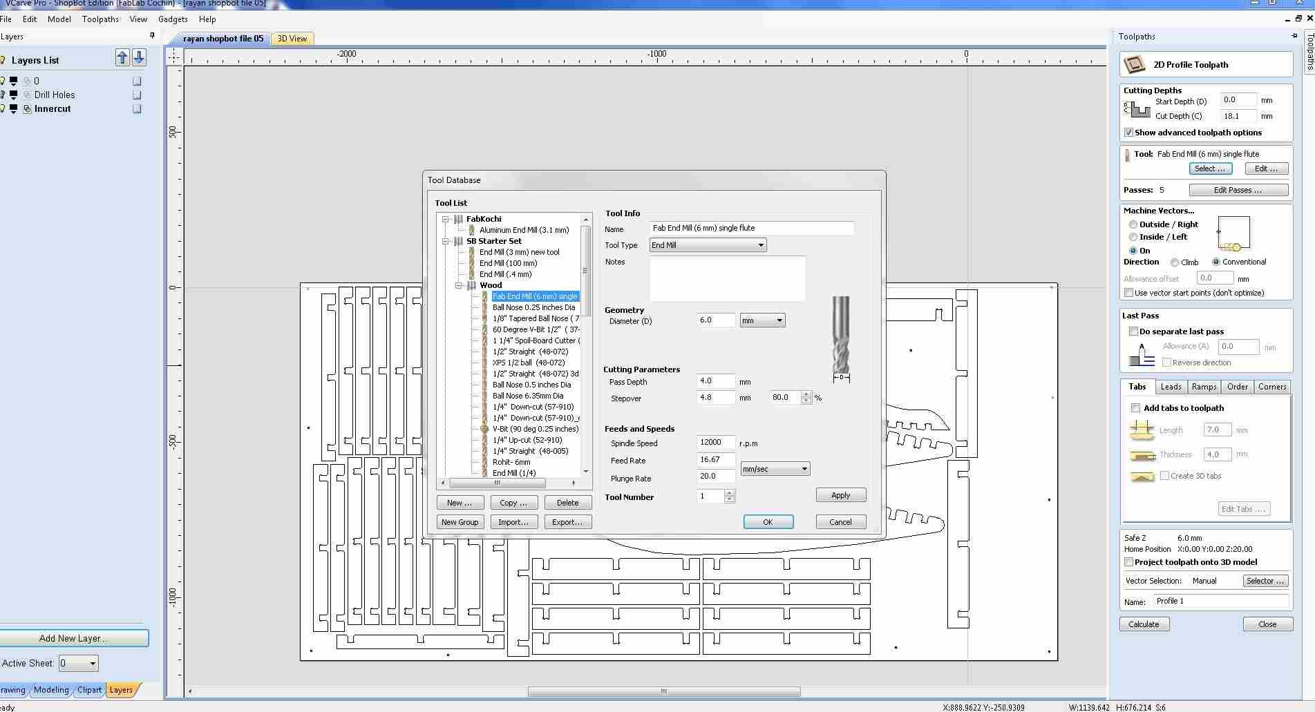 During the CAM, I used the auto-tab generation feature, and I found that the tabs were not properly placed. I removed all the tabs and placed the tabs manually.