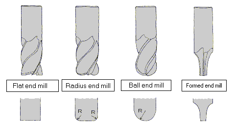 Types of mills include end mills, ball mills, roughing end mills, and others, each suited for specific tasks.