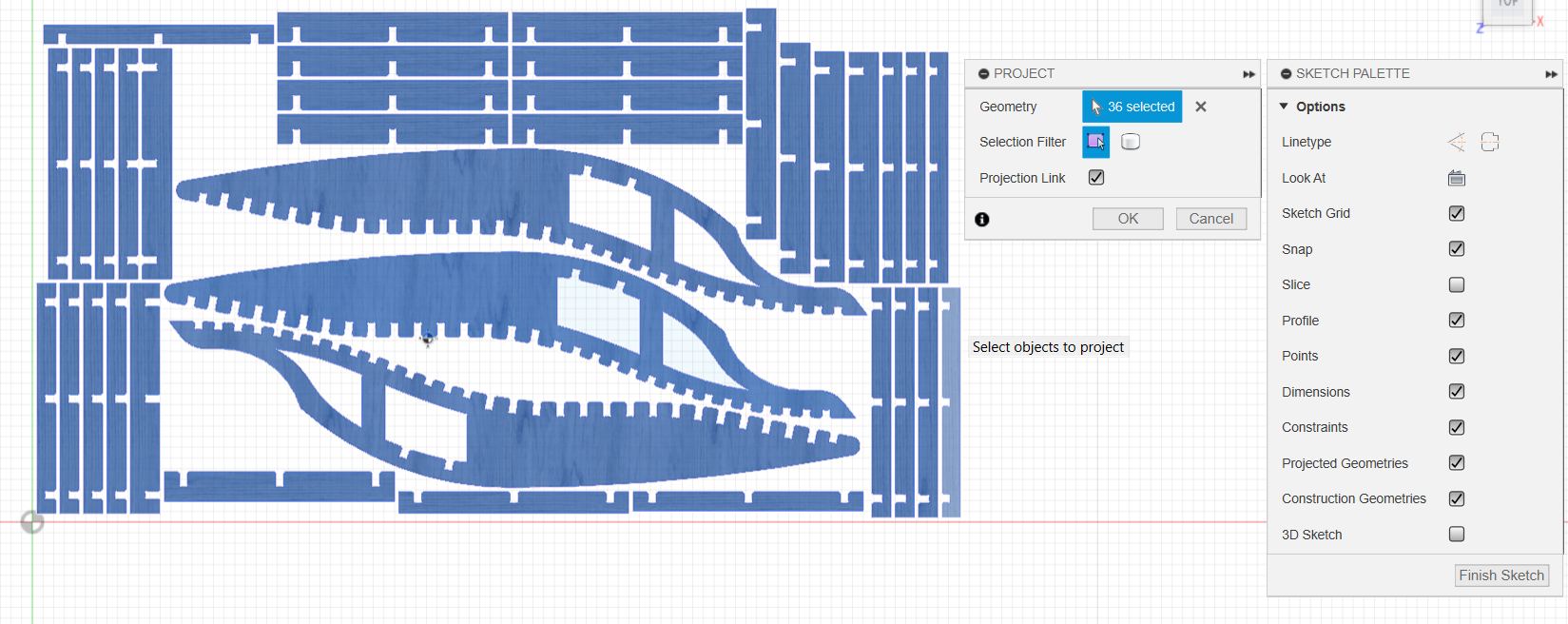 Then I created a new sketch on the top of one of the parts and then projected the outline of all the parts and saved the sketch.