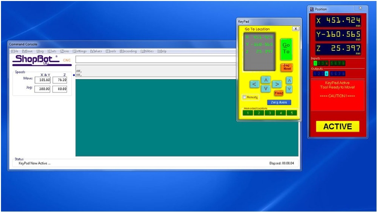 To load our file into the ShopBot, we must first zero the machine to the origin point of our material or stock. Click on the remote icon and follow the necessary steps to achieve this.