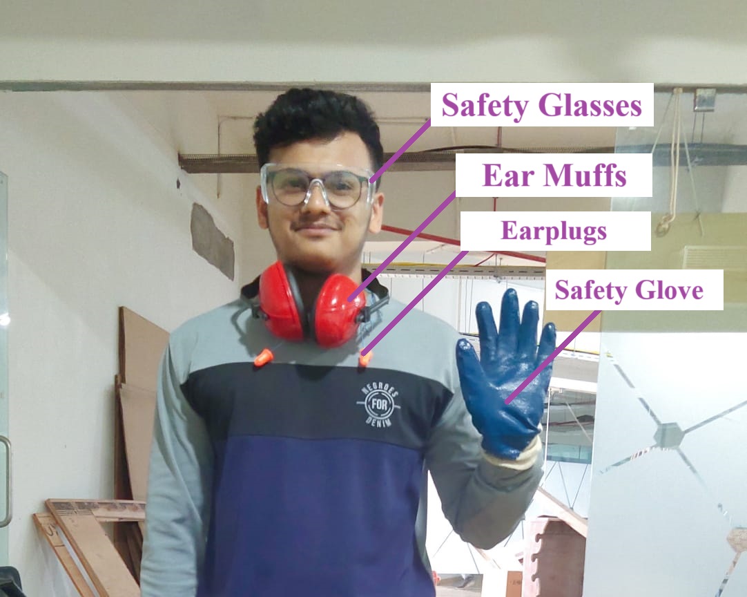 To protect my eyes and hand I wear safety glass and safety hand glove.