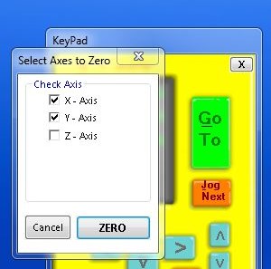 After clicking on the remote icon, use the arrows on the remote to jog the ShopBot to the origin point of our material. First, jog the machine along the X and Y axes to the desired origin position. Once the tool is in position, we can click on the "Zero Axes" button and then select the axes we want to zero by clicking on the "ZERO" button. This will zero our machine, and we will be ready to begin the cutting process.
