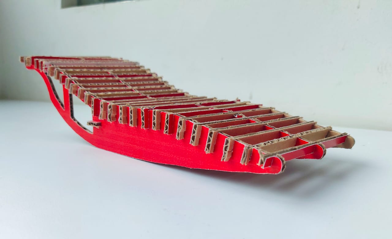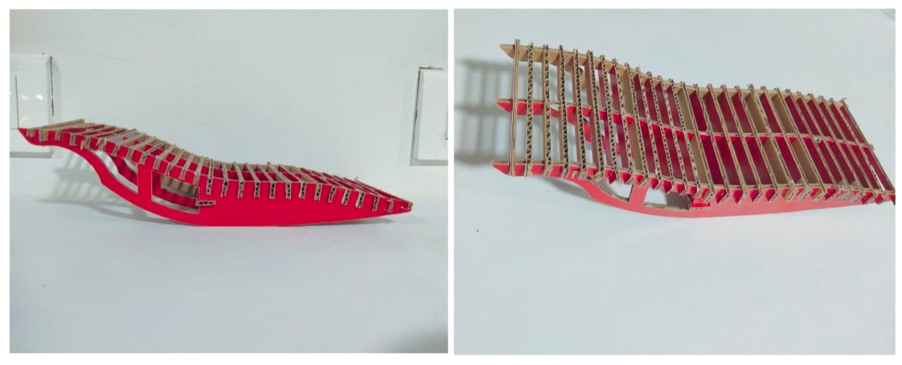 I used Zund to cut the scaled-down version of the lounge chair and assembled it, as shown below.