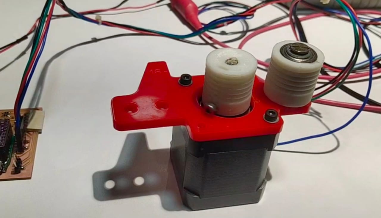 A stepper motor is a type of electric motor that moves in discrete steps, as opposed to continuous rotation like conventional motors. Each rotation is divided into a certain number of steps, and the motor must be sent a separate pulse for each step. The motor's position can be controlled precisely, without any feedback mechanism, as long as the motor is sized correctly to the task.