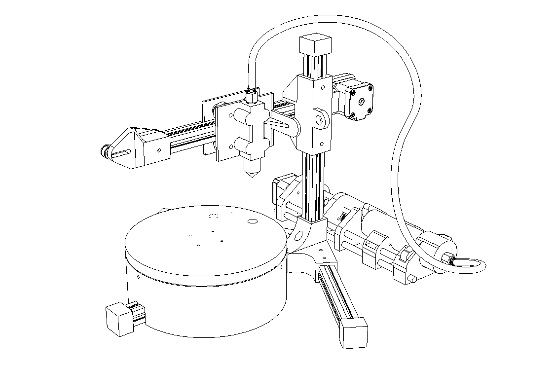 - Automated Turn Table Cake Platform: The cake sits on a platform that rotates and tilts according to the SVG instructions. This allows the toolhead to access all areas of the cake for a seamless and consistent decoration process.