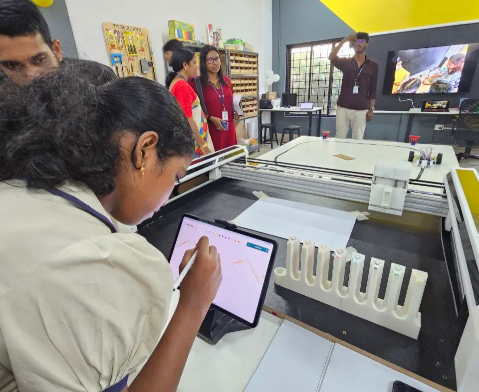 The Poly Plot is a custom-designed CNC Core XY multi-color plotter developed under the Centre for Early Innovation (CEI) initiative. It was created to showcase the possibilities of digital fabrication and automation within school makerspaces, bringing together creativity, precision, and technology in a single educational machine.