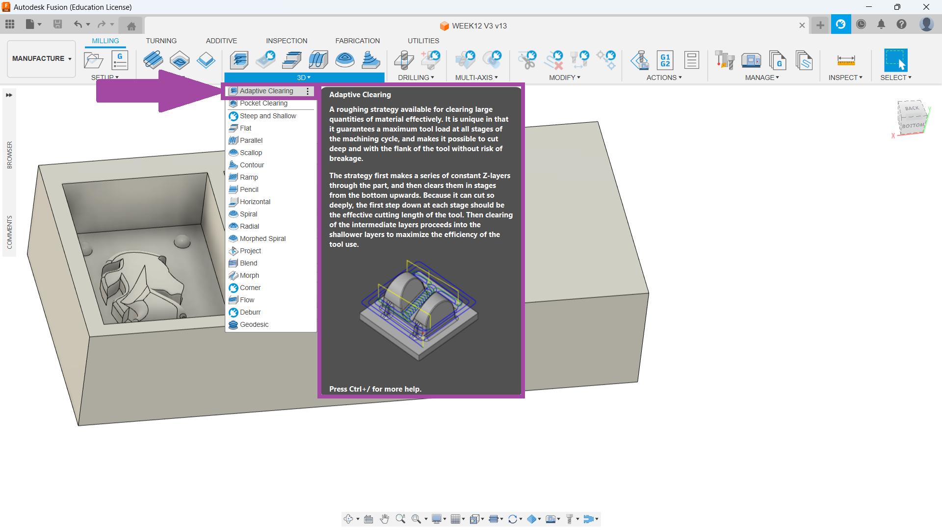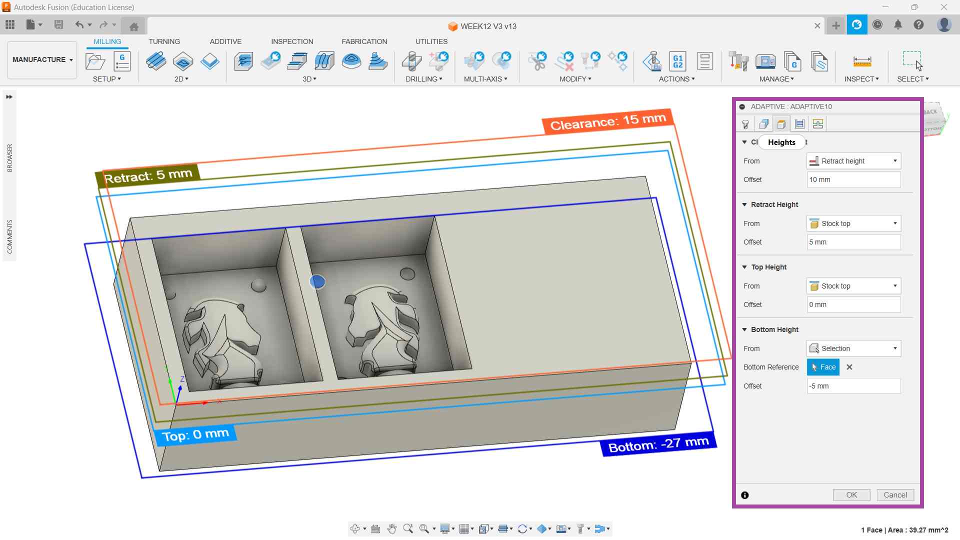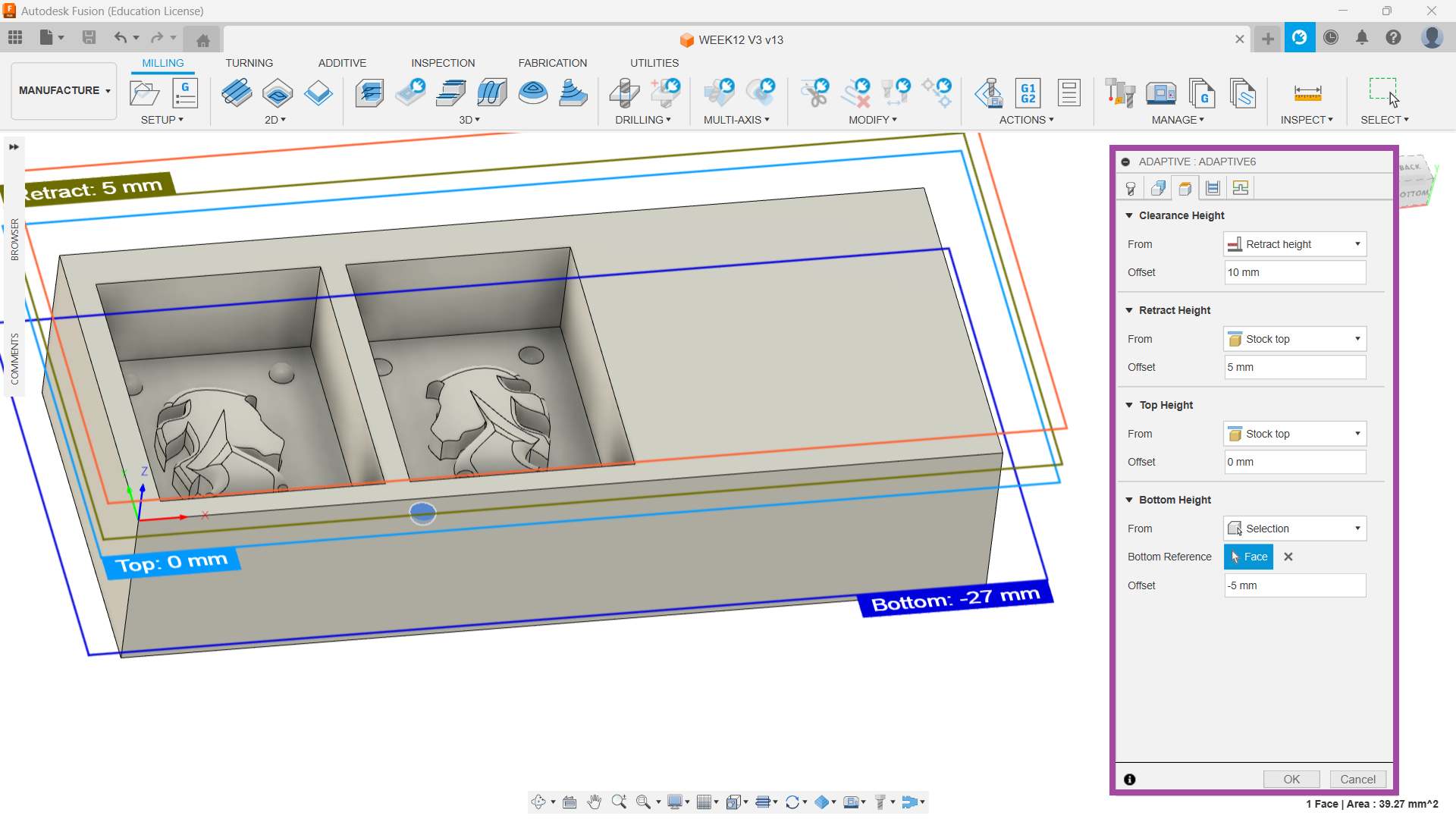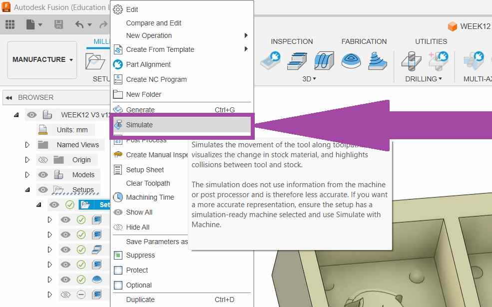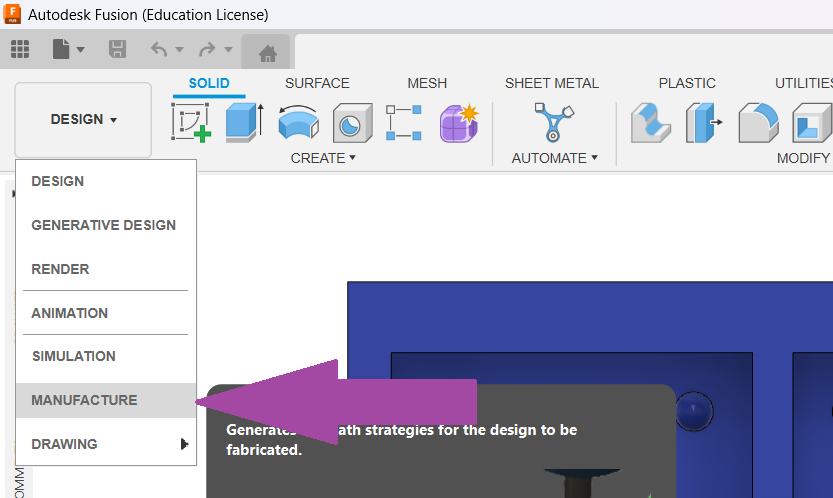 In order to perform CAM in Fusion 360, we need to change the workspace from the design to the manufacturing workspace.