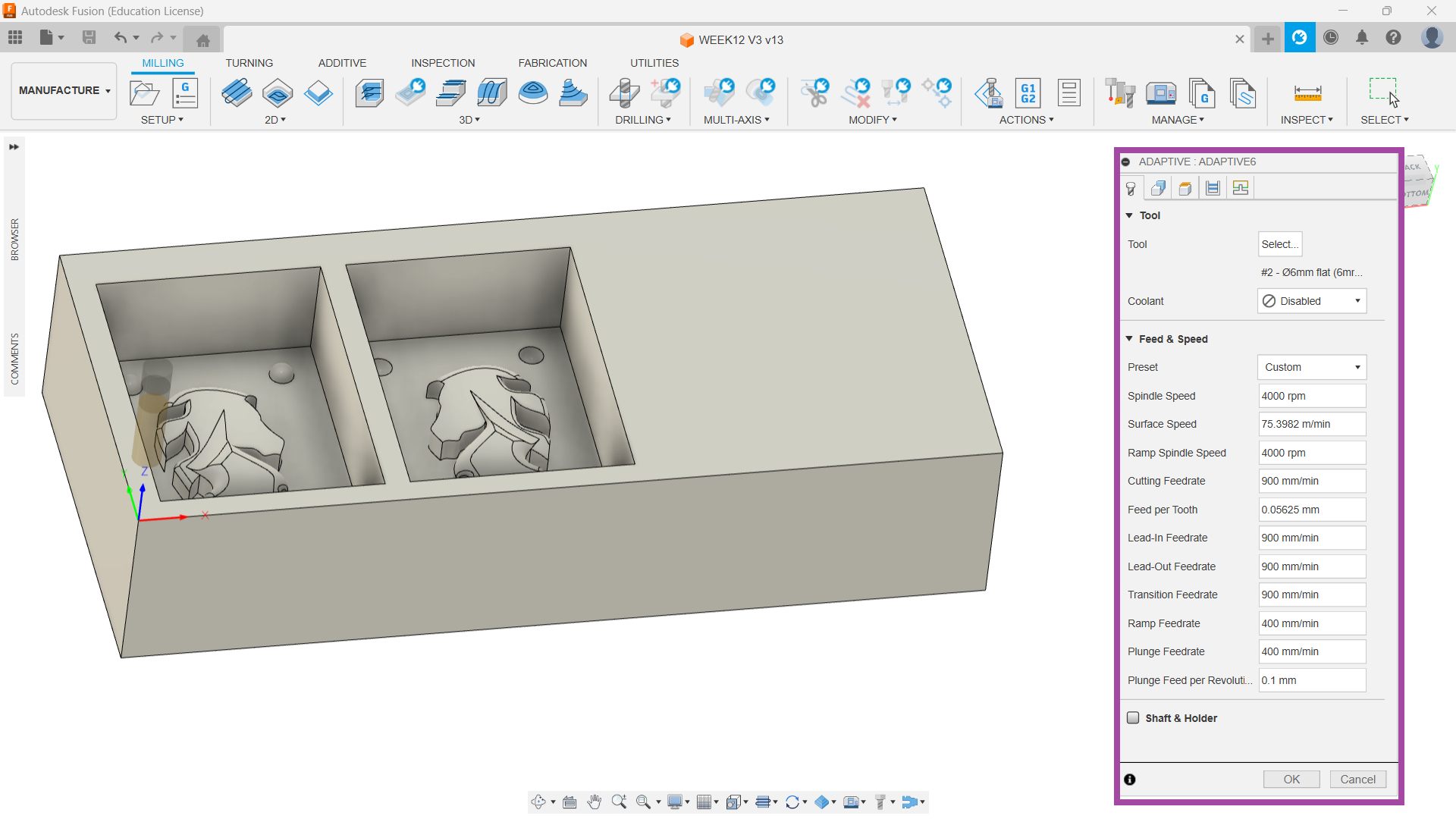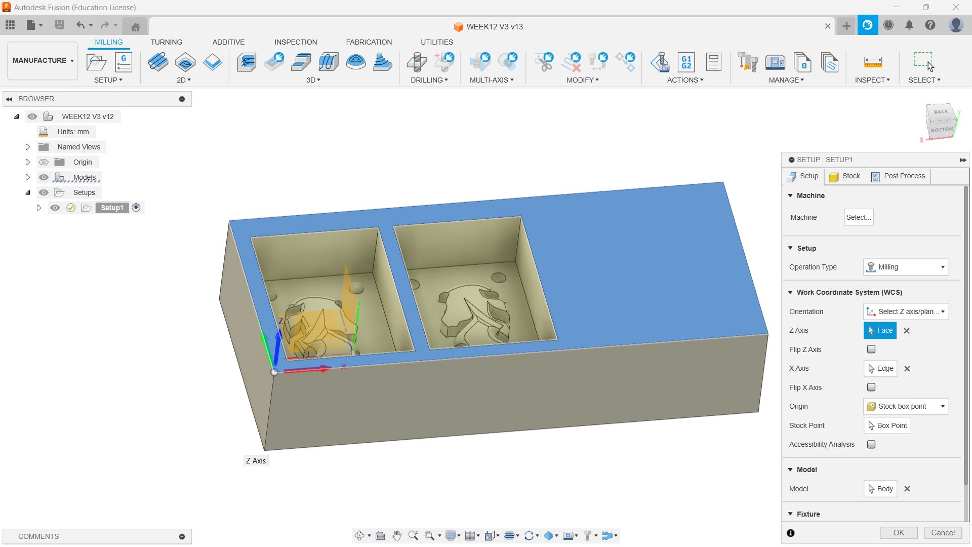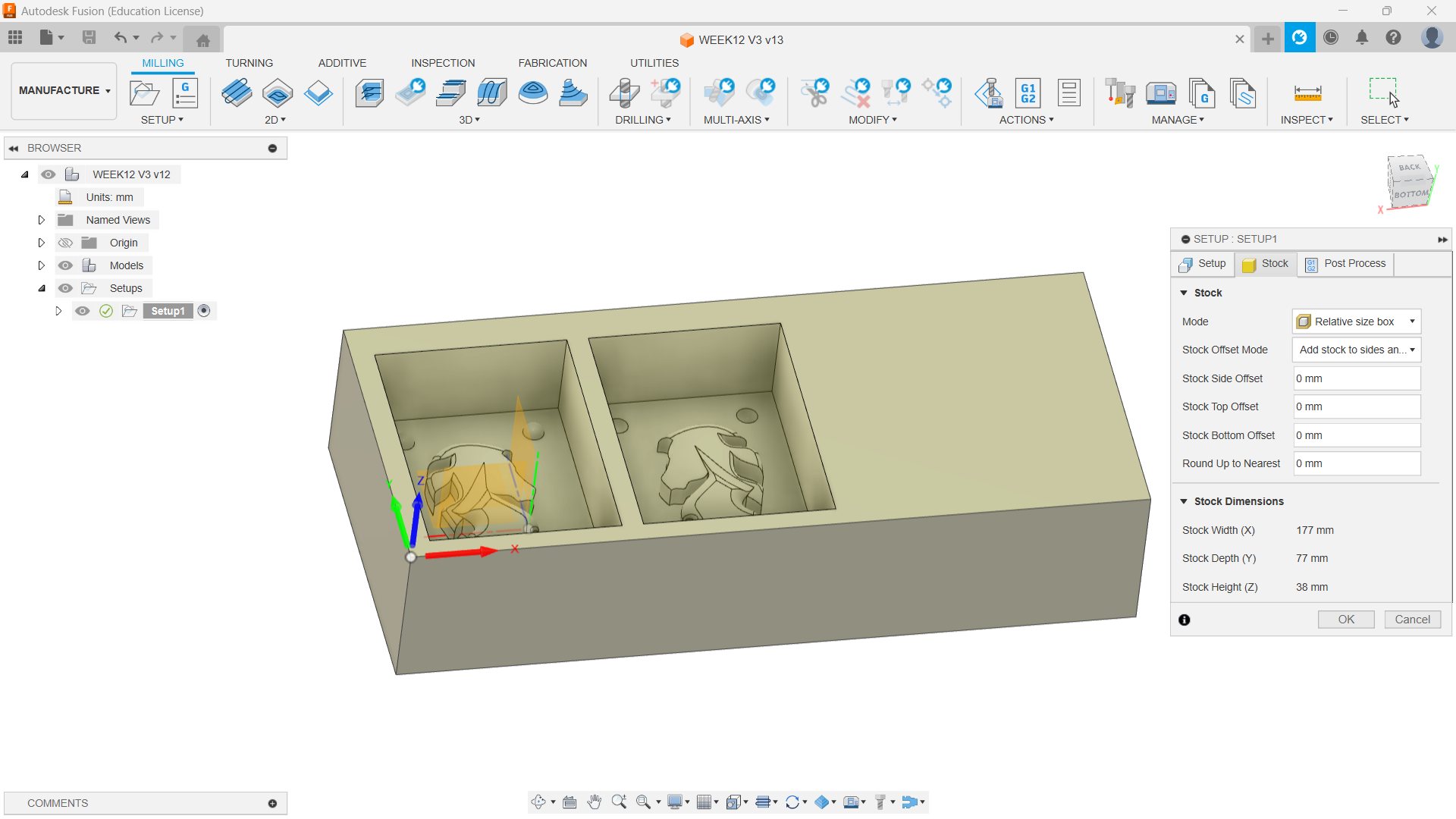 In order to get a visual representation of how my piece would be placed in the machinable wax, I created a block with the exact dimensions of the machinable wax.