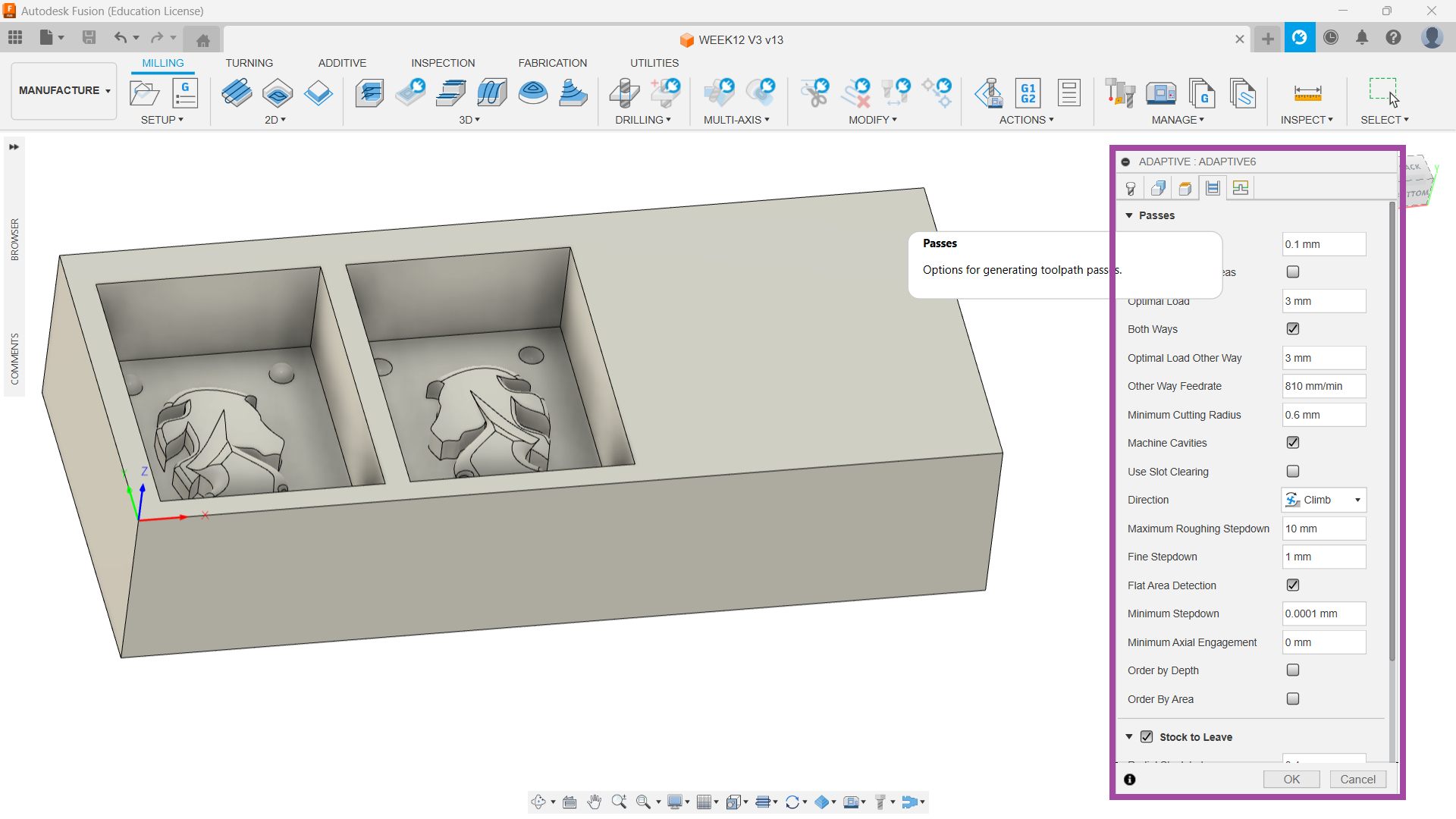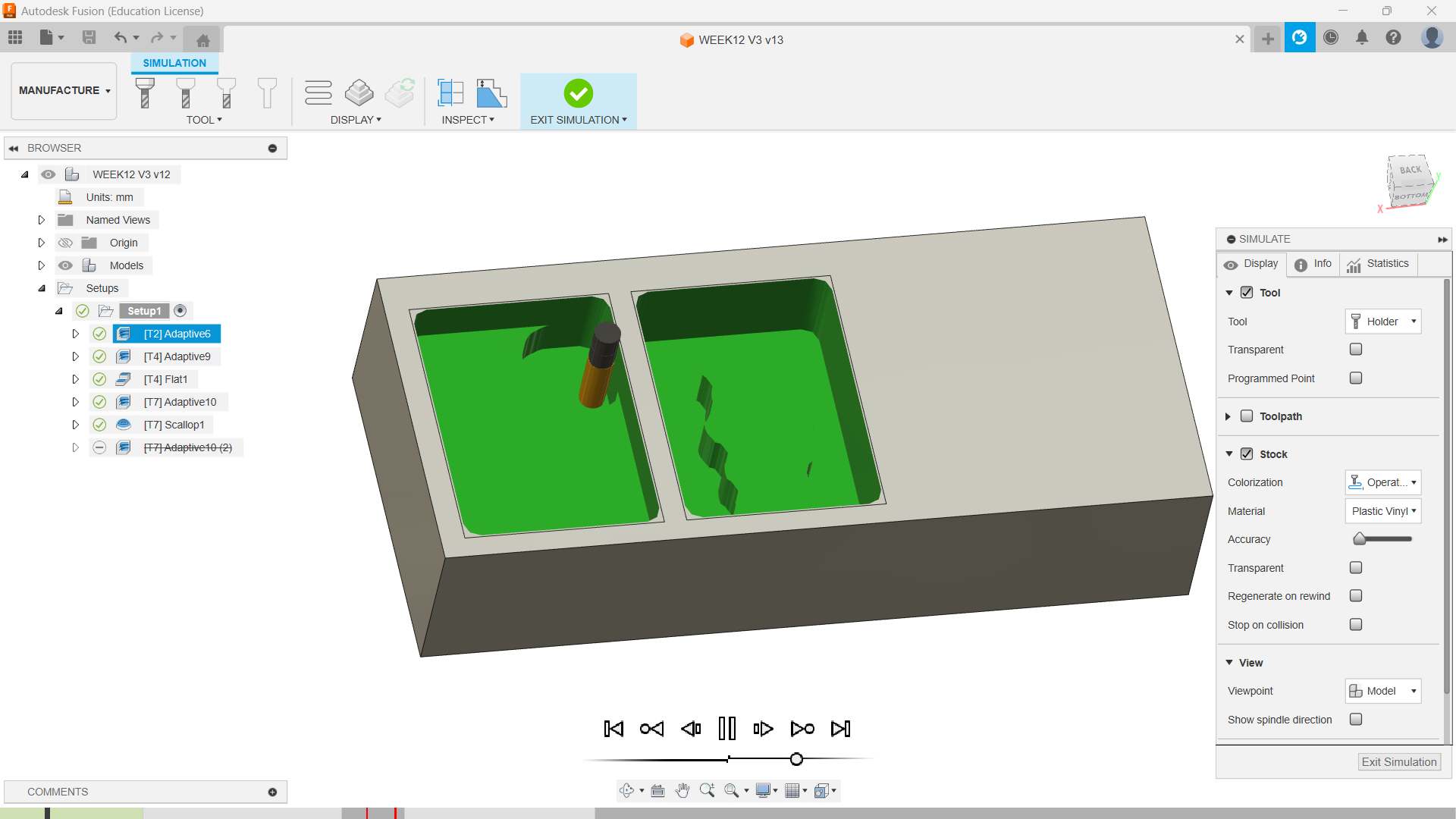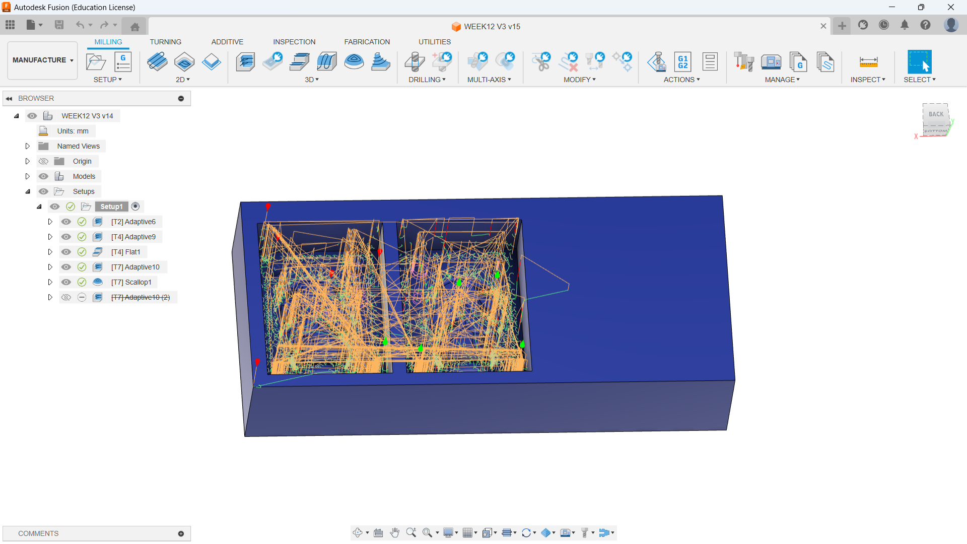 The photo below illustrates the wax after performing the adaptive operation with a 3mm flat end mill.