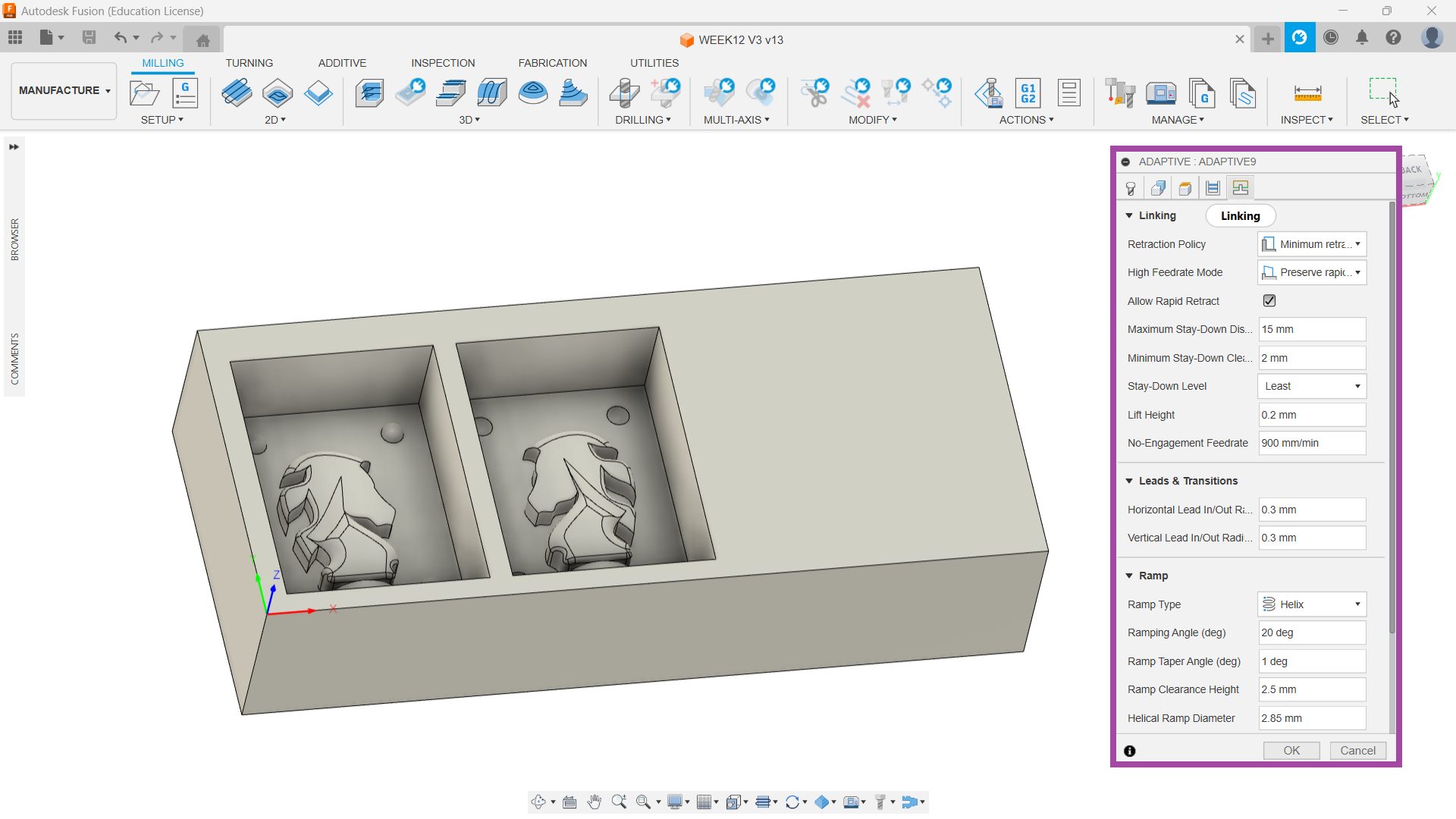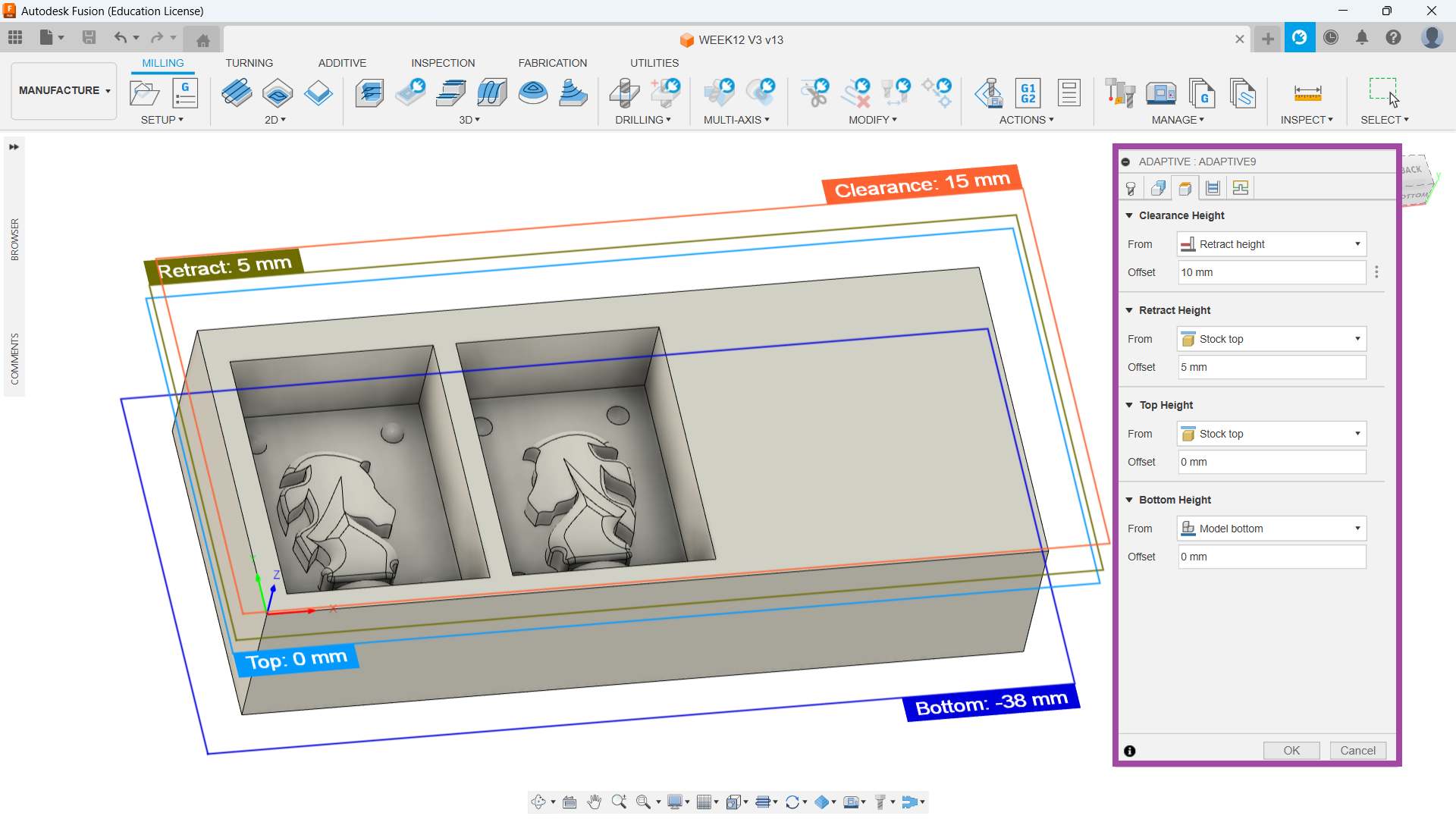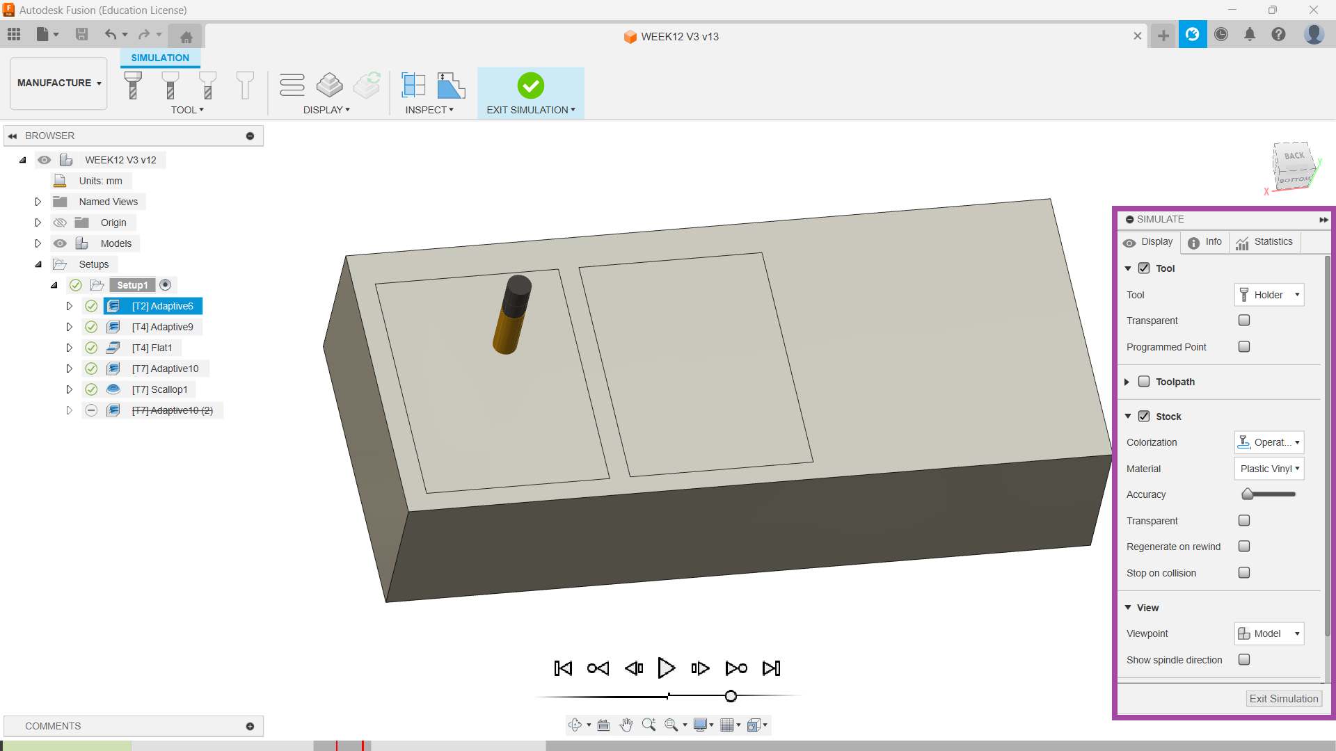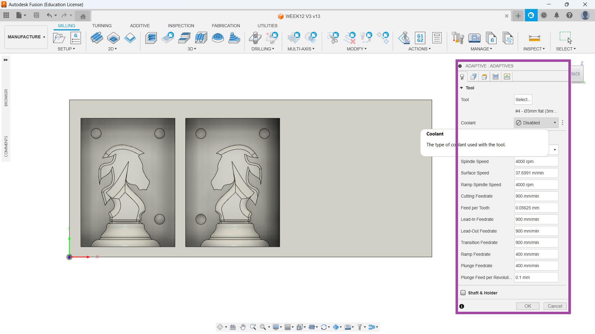 The photo below illustrates the wax after performing the adaptive operation with a 3mm flat end mill.