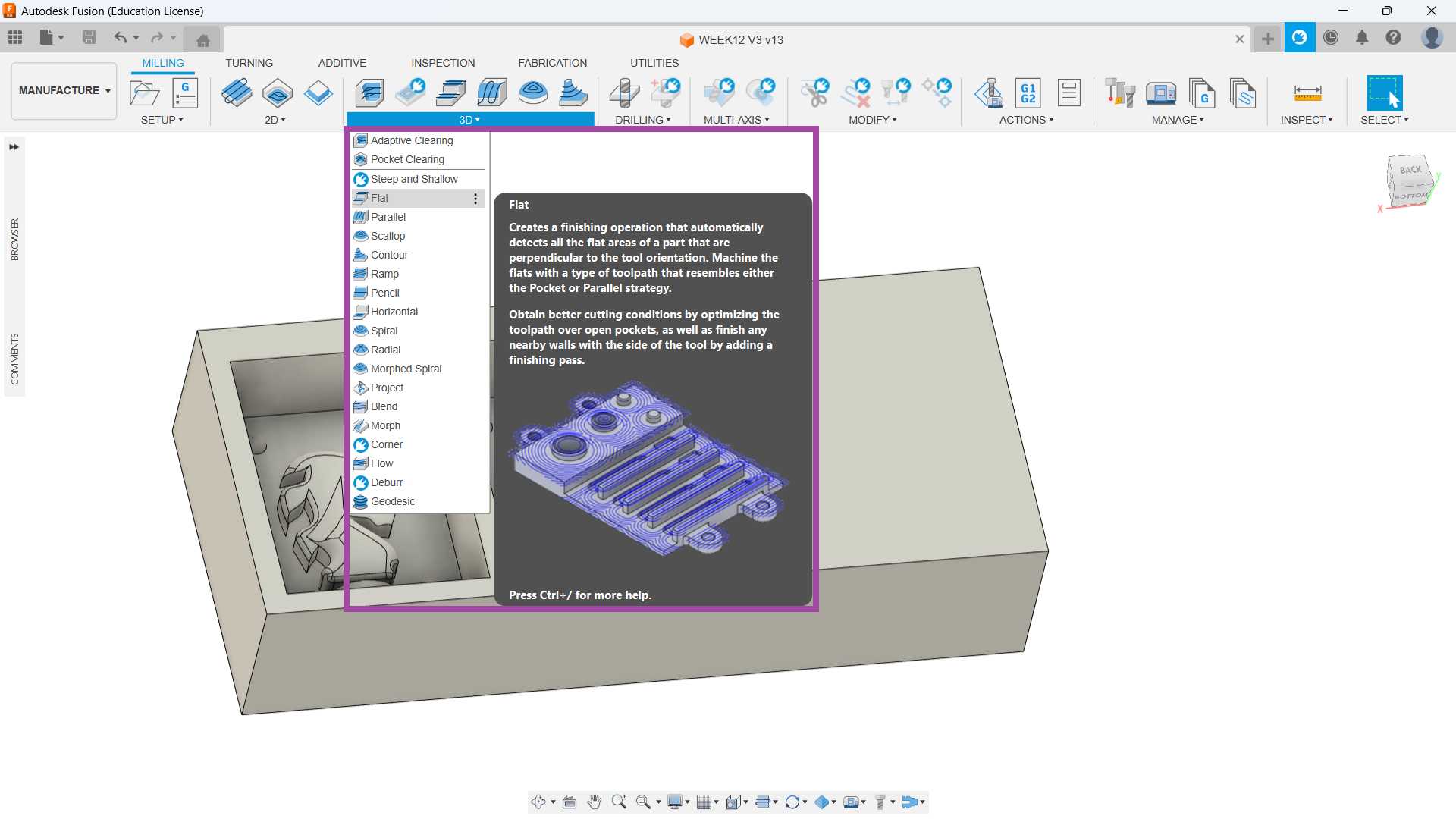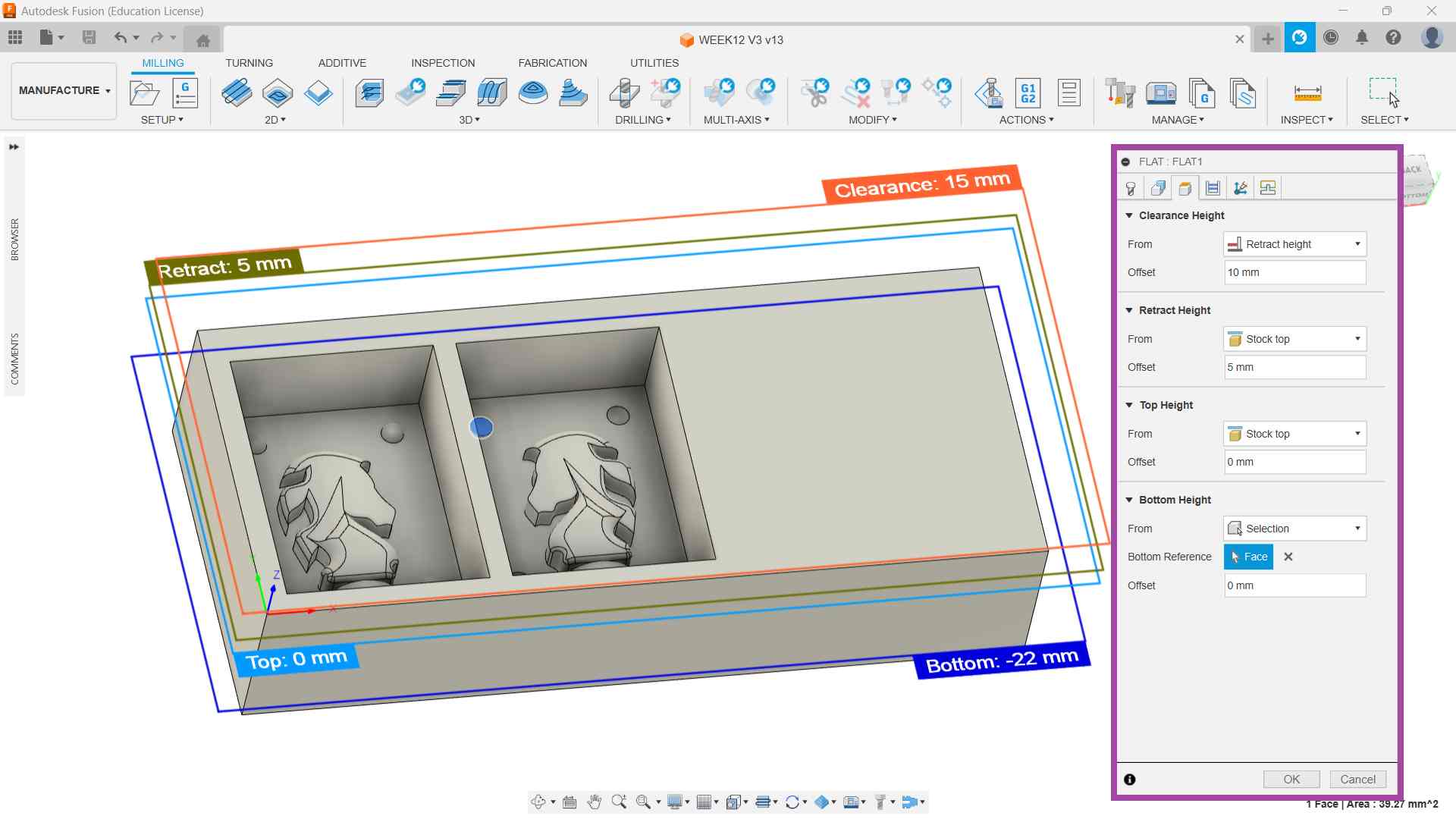 I selected the material and indicated the beginning in the upper corner. The milling operation type was selected. Since we had previously set up the stock on design with the same dimensions, we must declare the kind and dimensions of the material being used when setting up a new process.