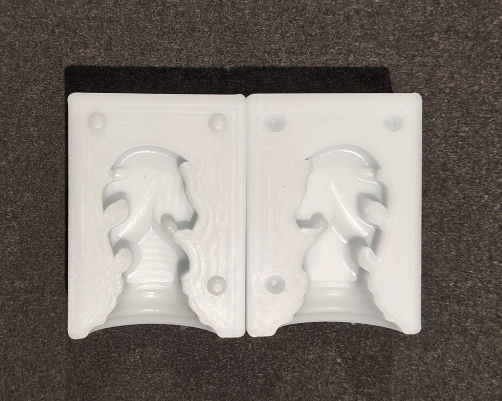 The first step in casting my piece is to create a positive part to create a negative mold. Compared to other chess pieces, I need to create a negative part for the knight because the other part is the mirror of the first part.