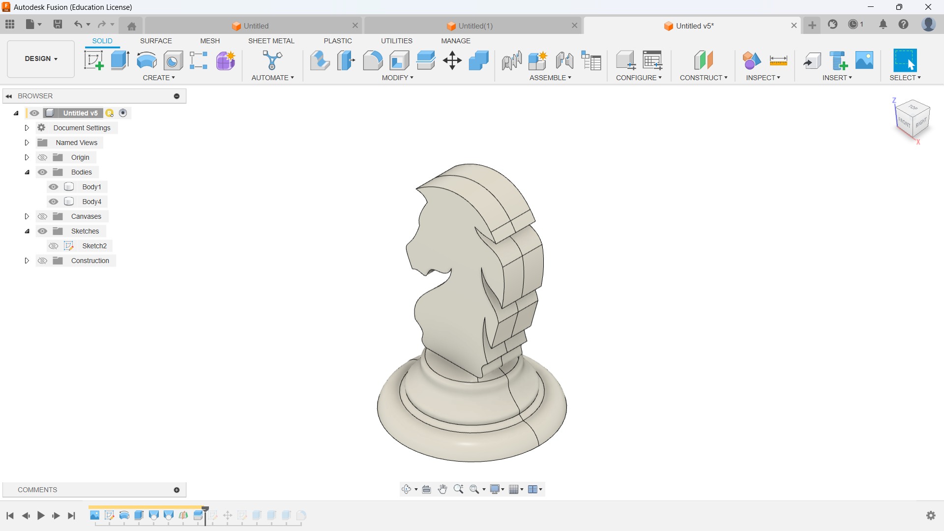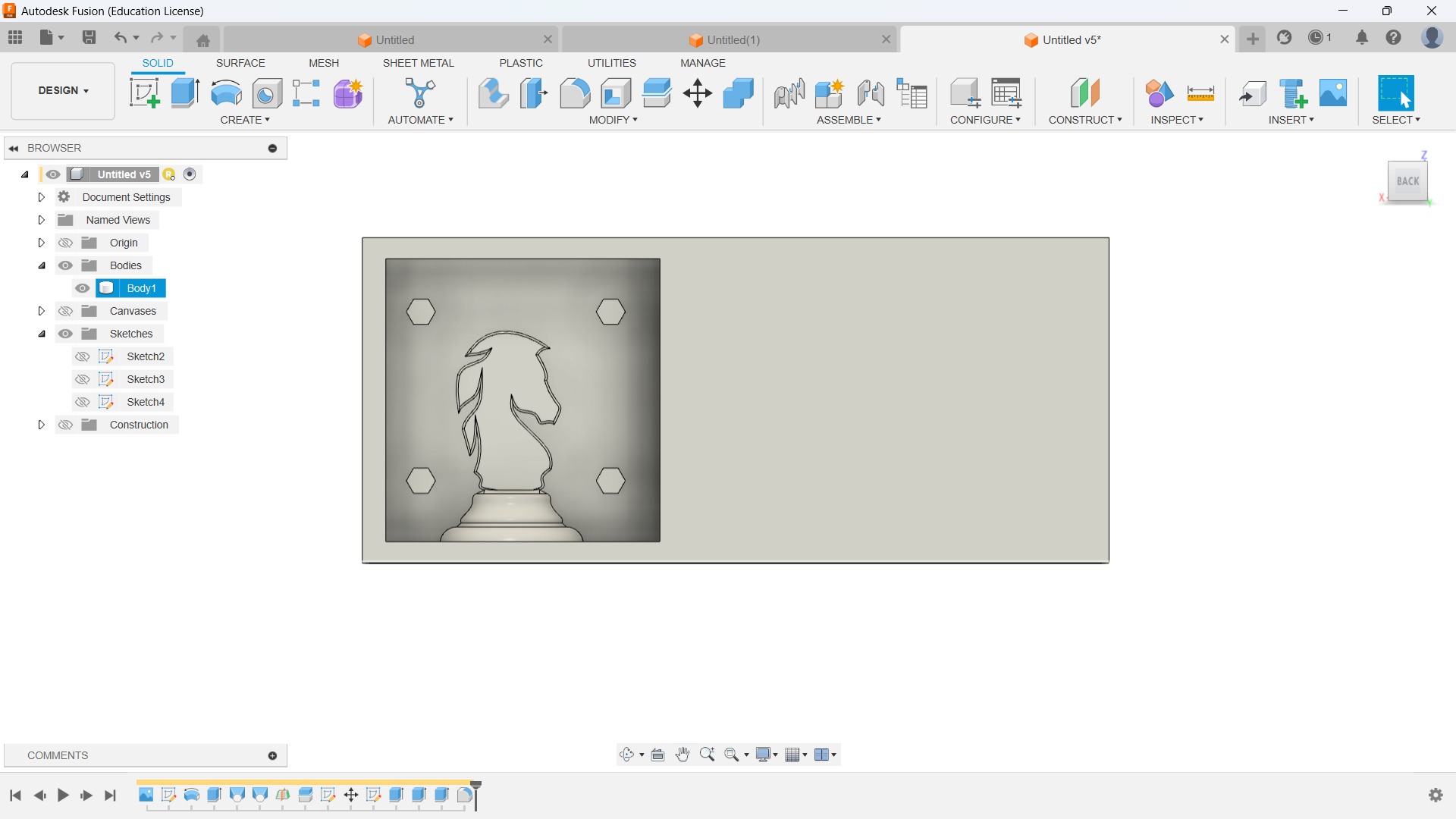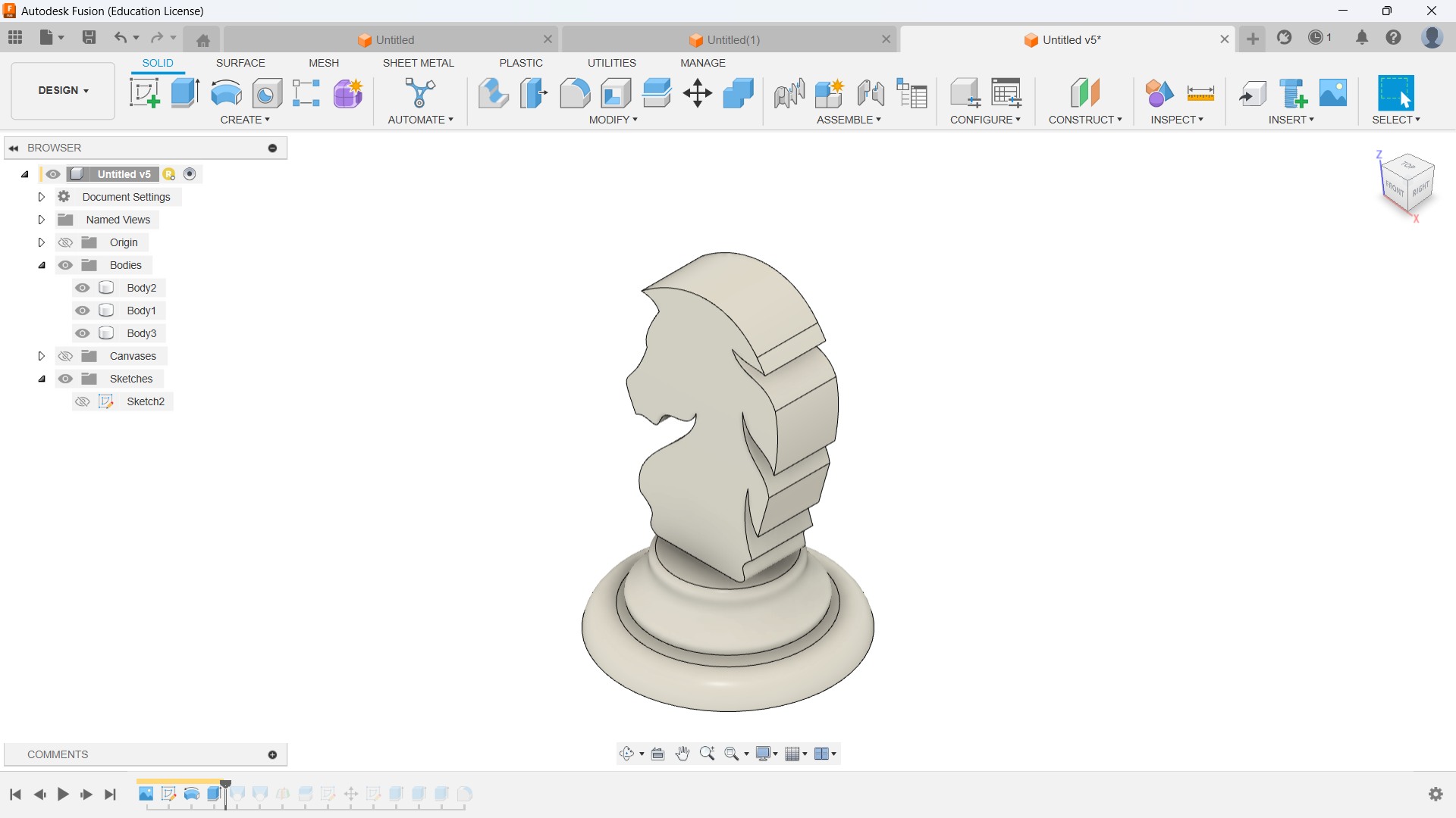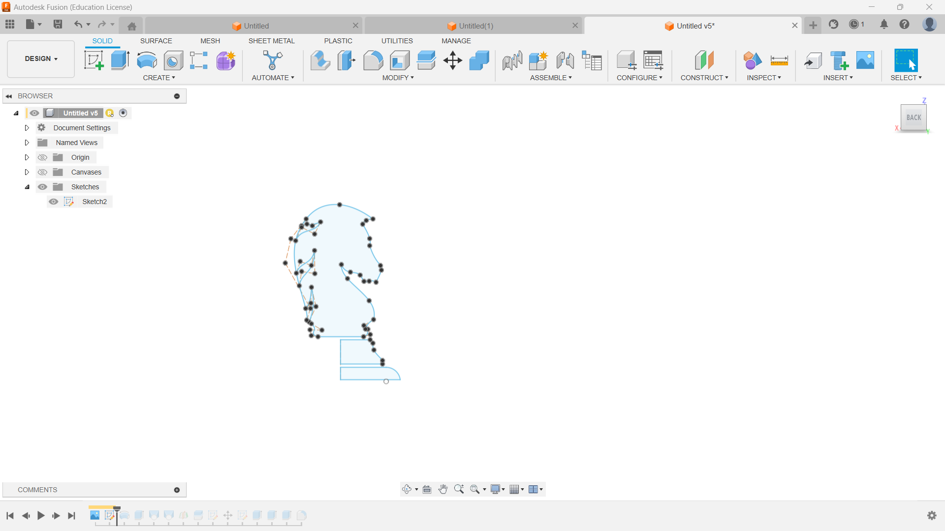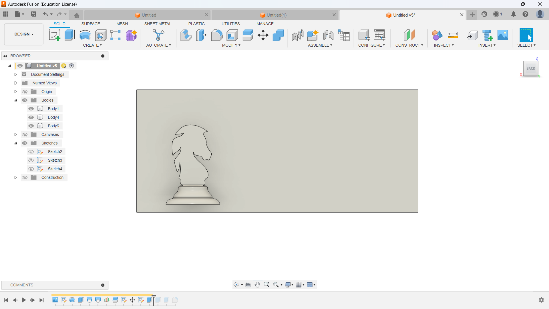 Later, I converted the sketch into 3D by extruding and revolving the sketch.