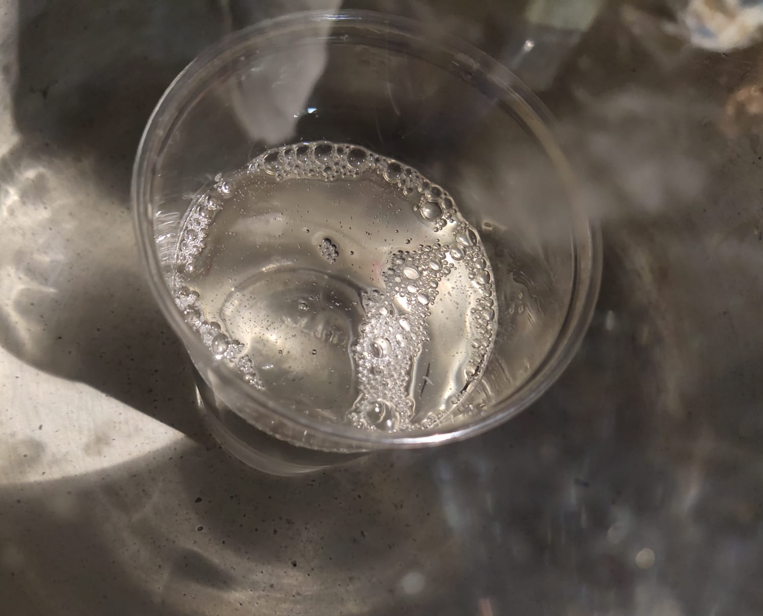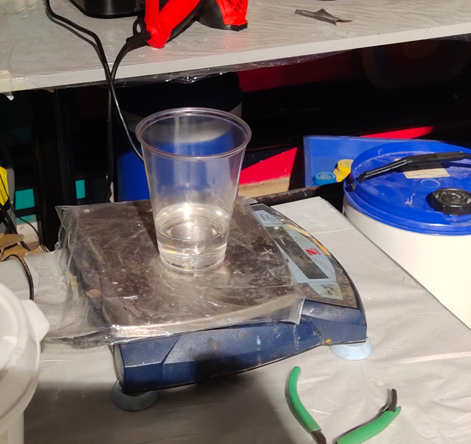 To get the volume, I poured the water into a disposable transparent glass and marked the level. I considered adding a little extra water while measuring the volume.