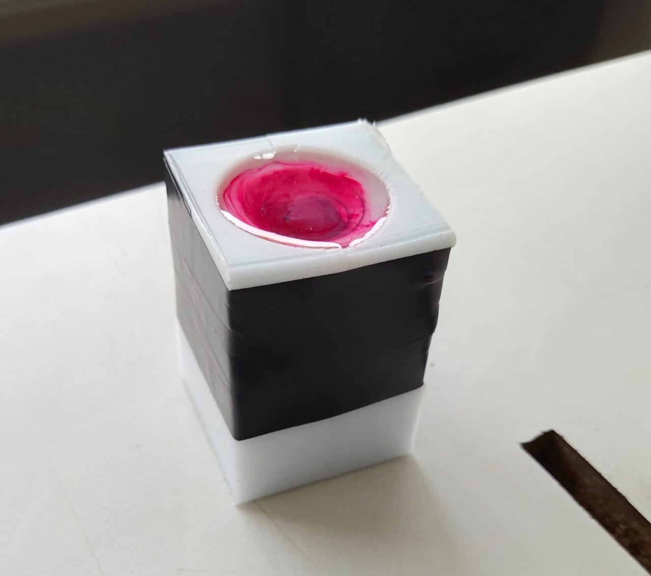 After using water to clean the mold, I added water to measure its volume and see whether any leaks were present.