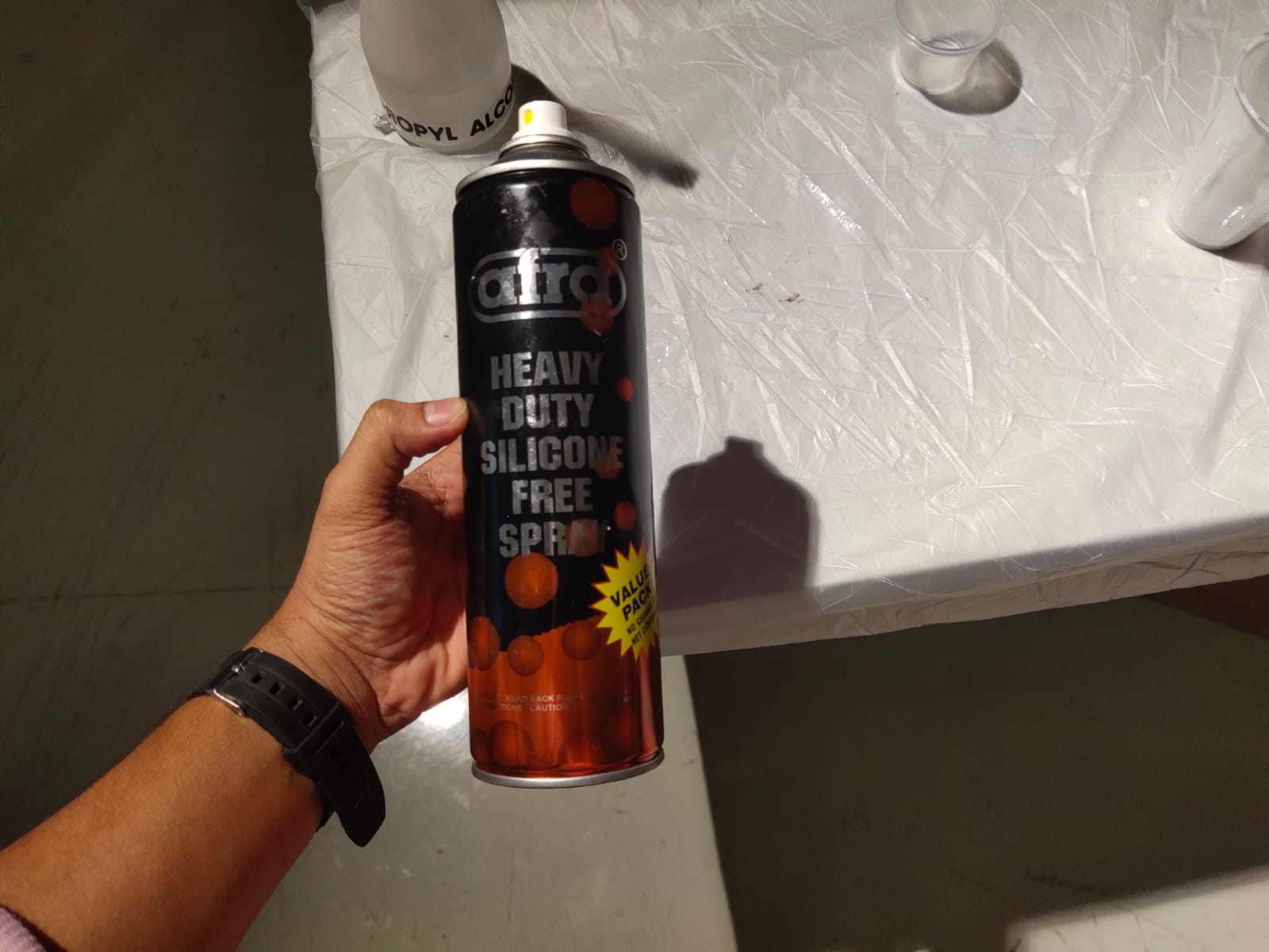 Then spray the silicone-free spray on top of the mold so that the silicone can be easily removed from the mold when it is cured.