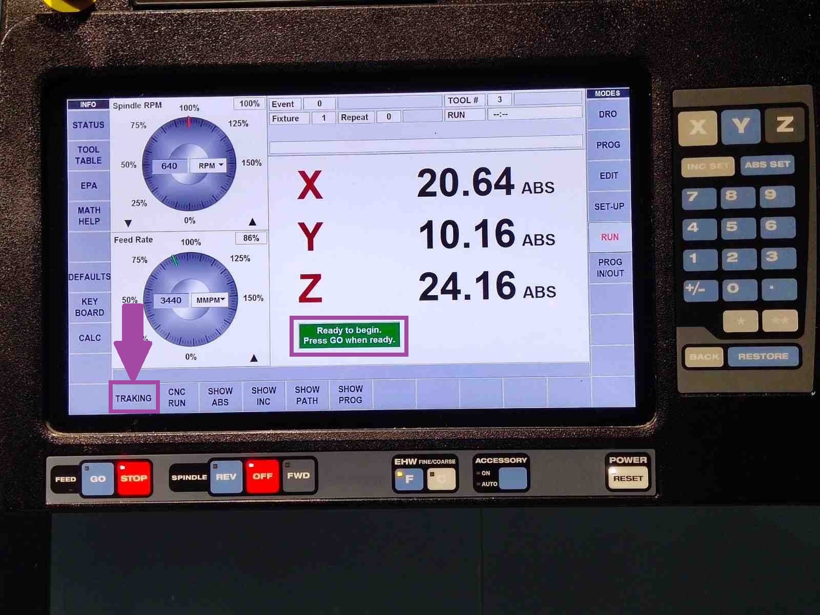 Once everything is fine, move two steps backward by rotating the handwheel anti-clockwise. Then exit from tracking mode and select