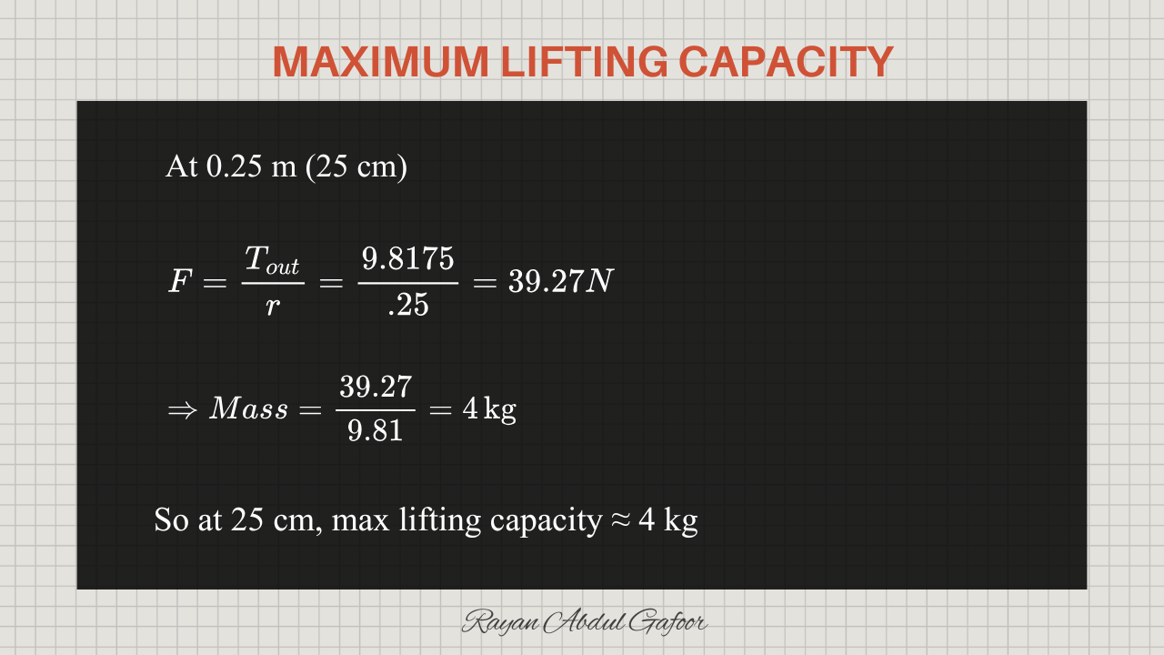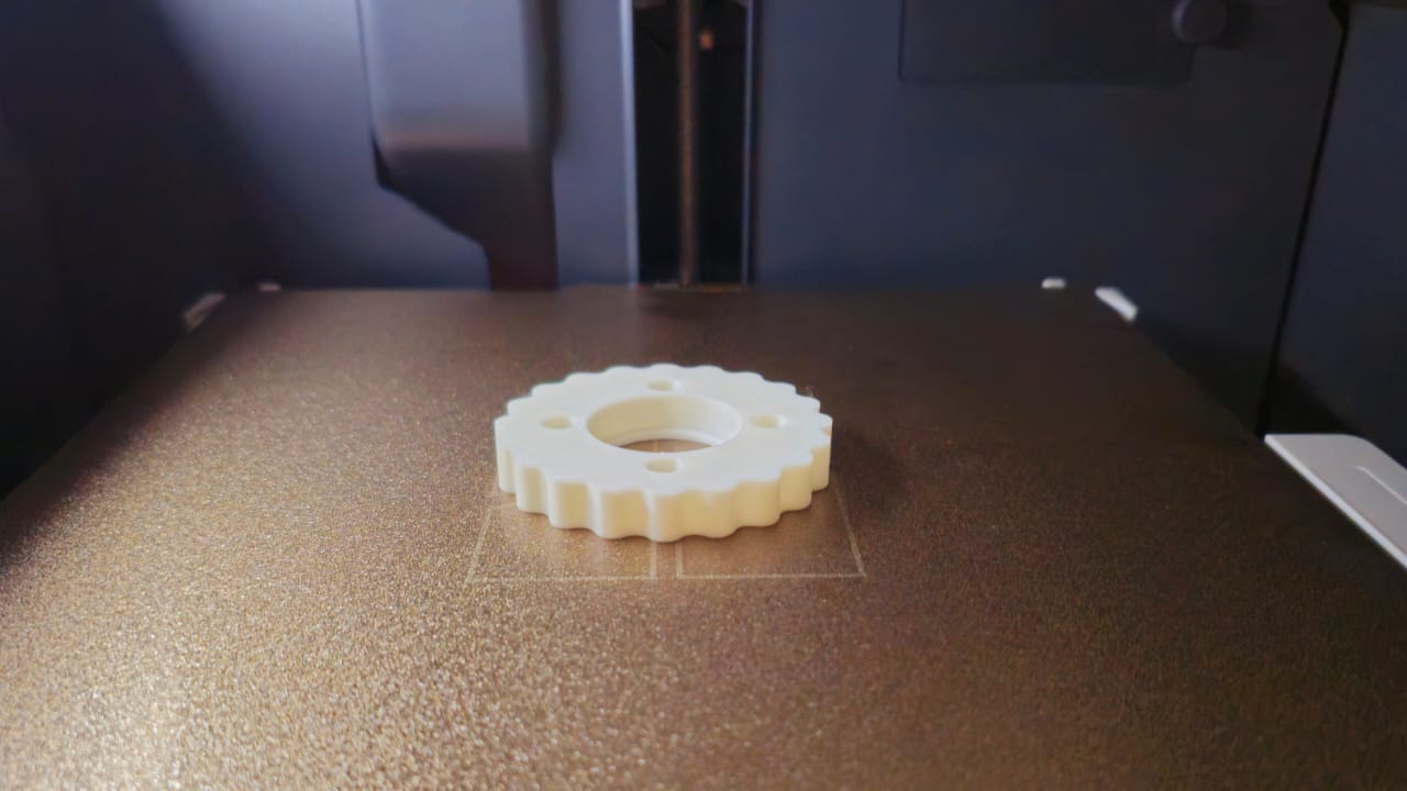 All components were 3D printed on a Bambu Lab P1S using black and white PETG. The print configuration included 5 wall loops for increased strength and rigidity, and a 50% infill density to ensure optimal structural integrity under load.