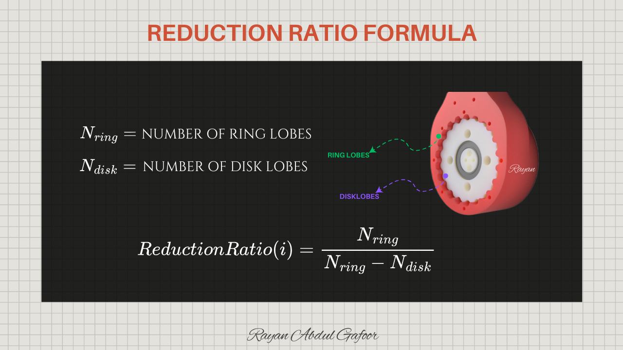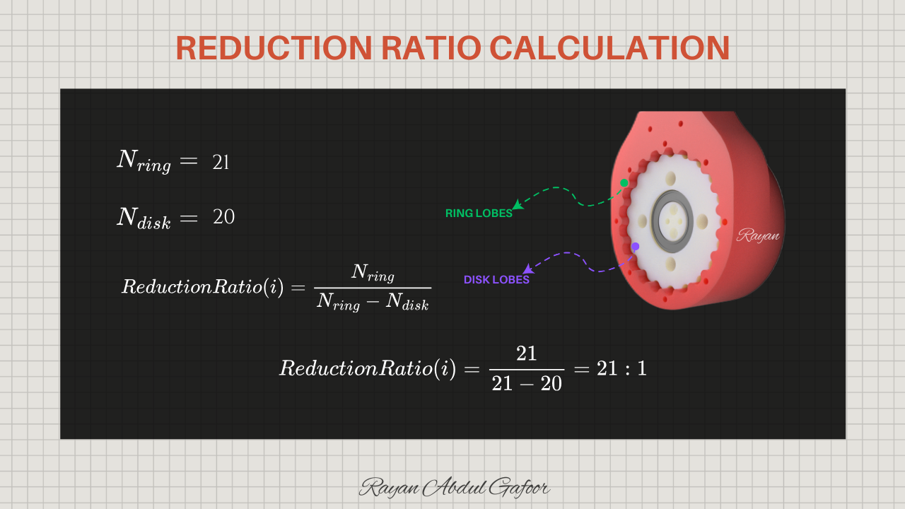 Through iterative adjustments guided by these calculations, the design is tuned to achieve the desired reduction ratio, torque capacity, smooth operation, and compact form.