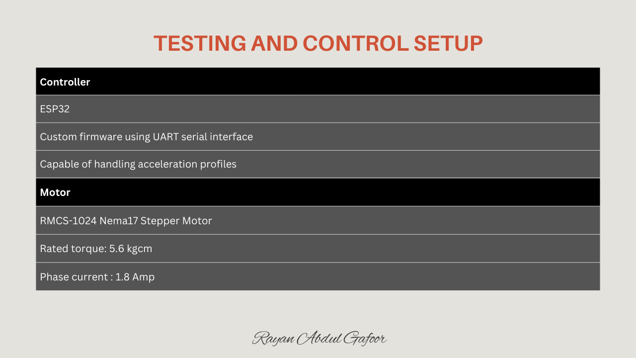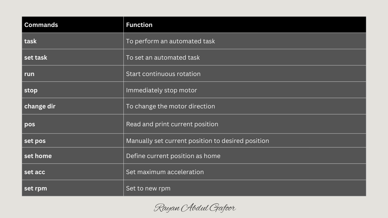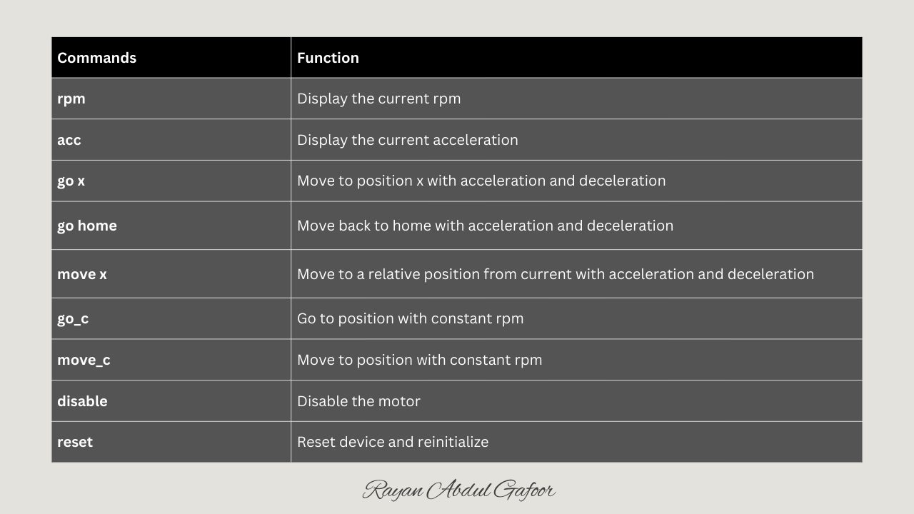 I wrote a custom serial-command firmware that allows complete control of the cycloidal actuator.